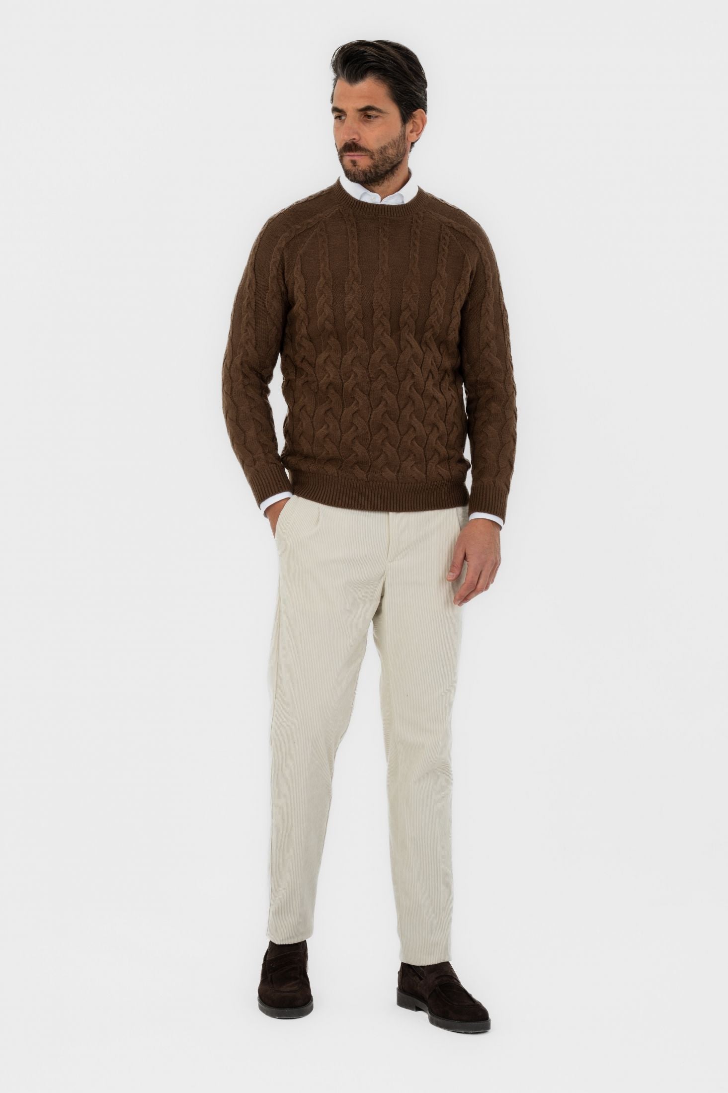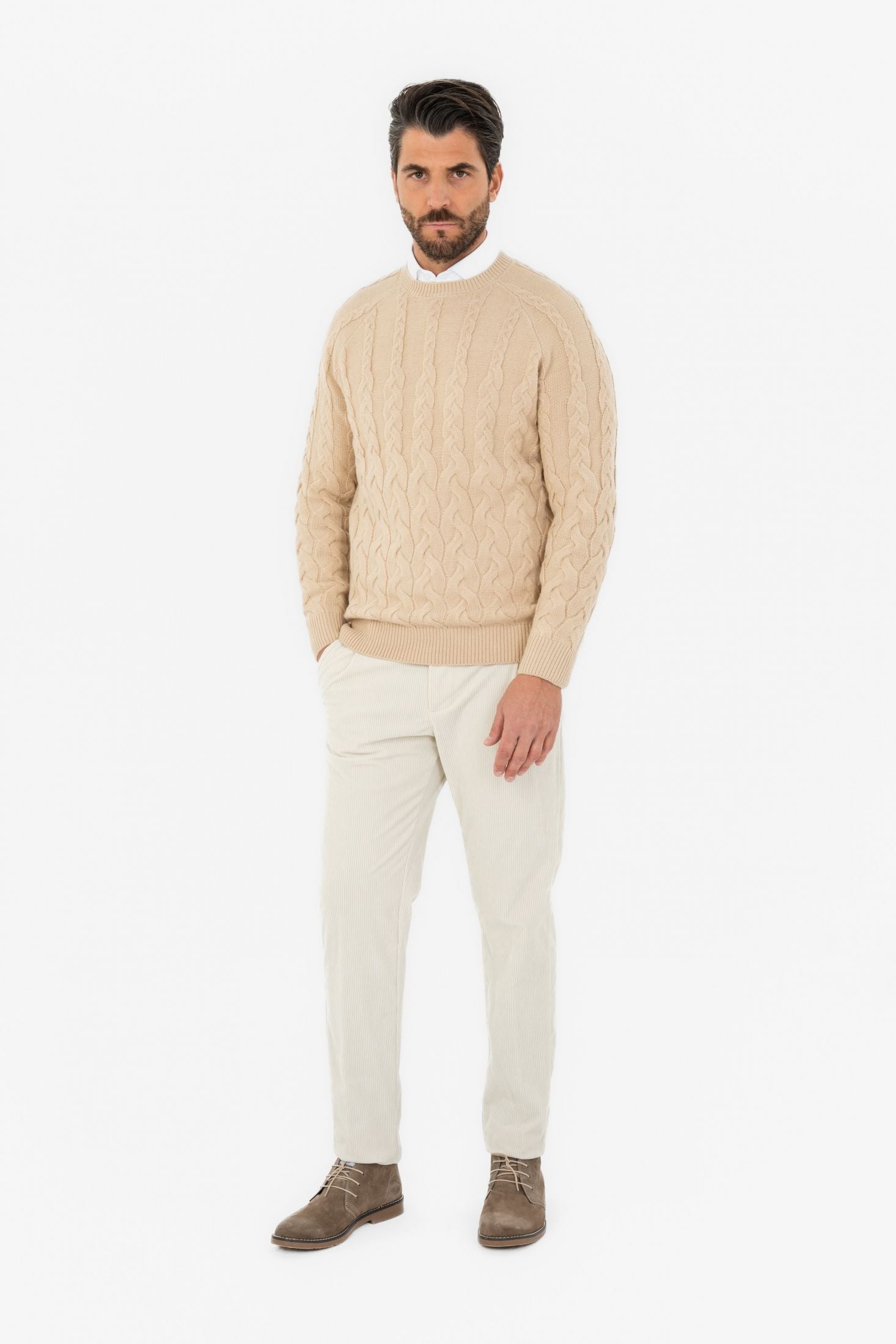 Il collo girocollo con bordo a costine assicura una vestibilità pulita e versatile, ideale da indossare sia sopra una camicia per un look curato.
