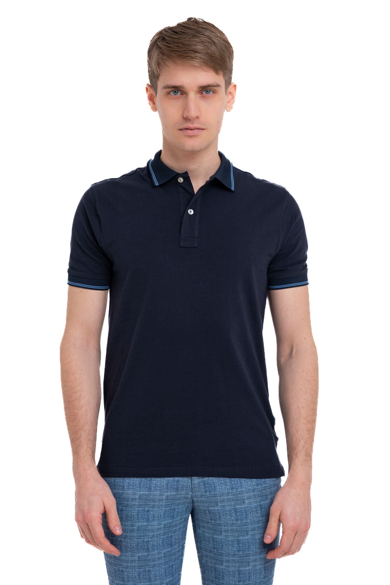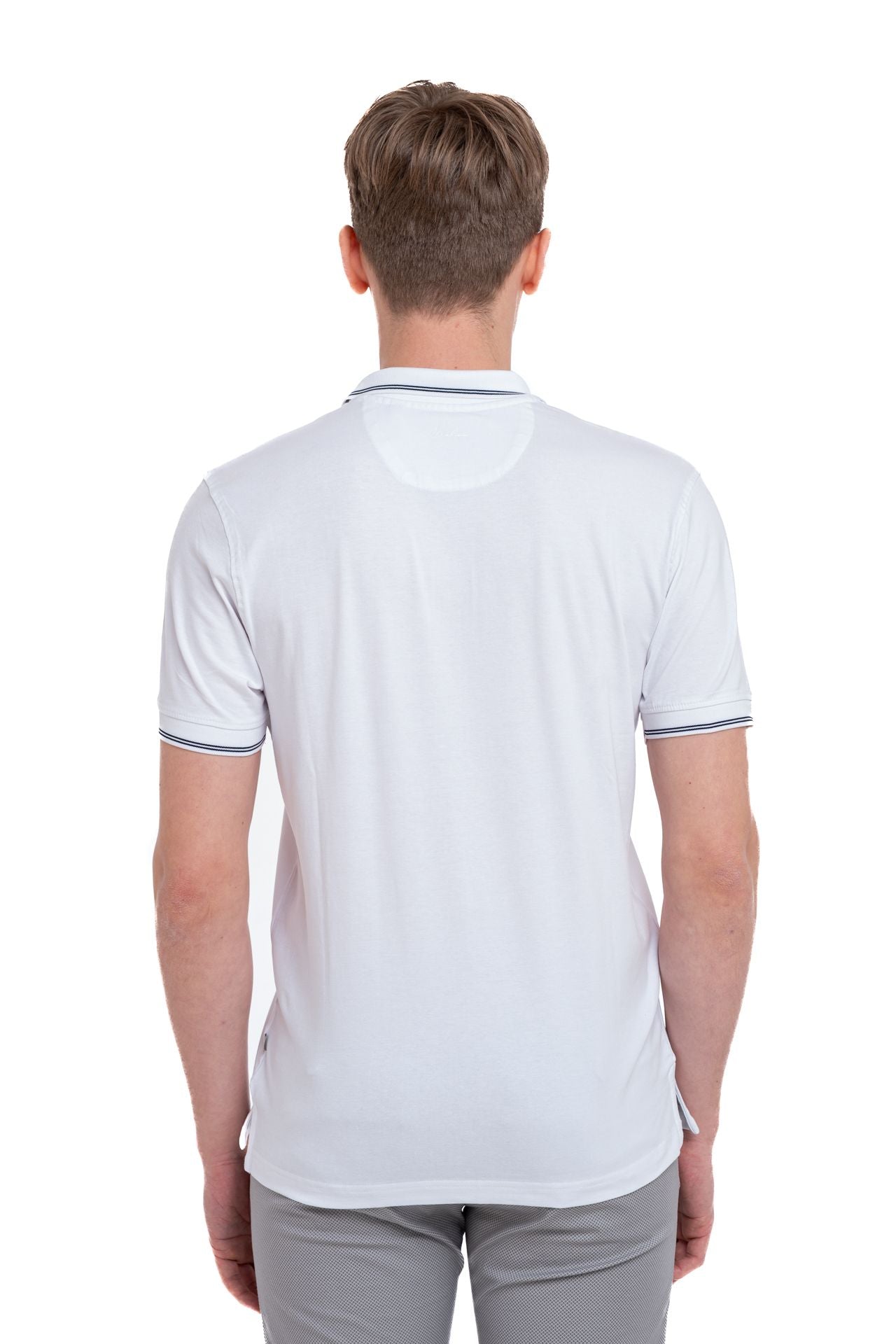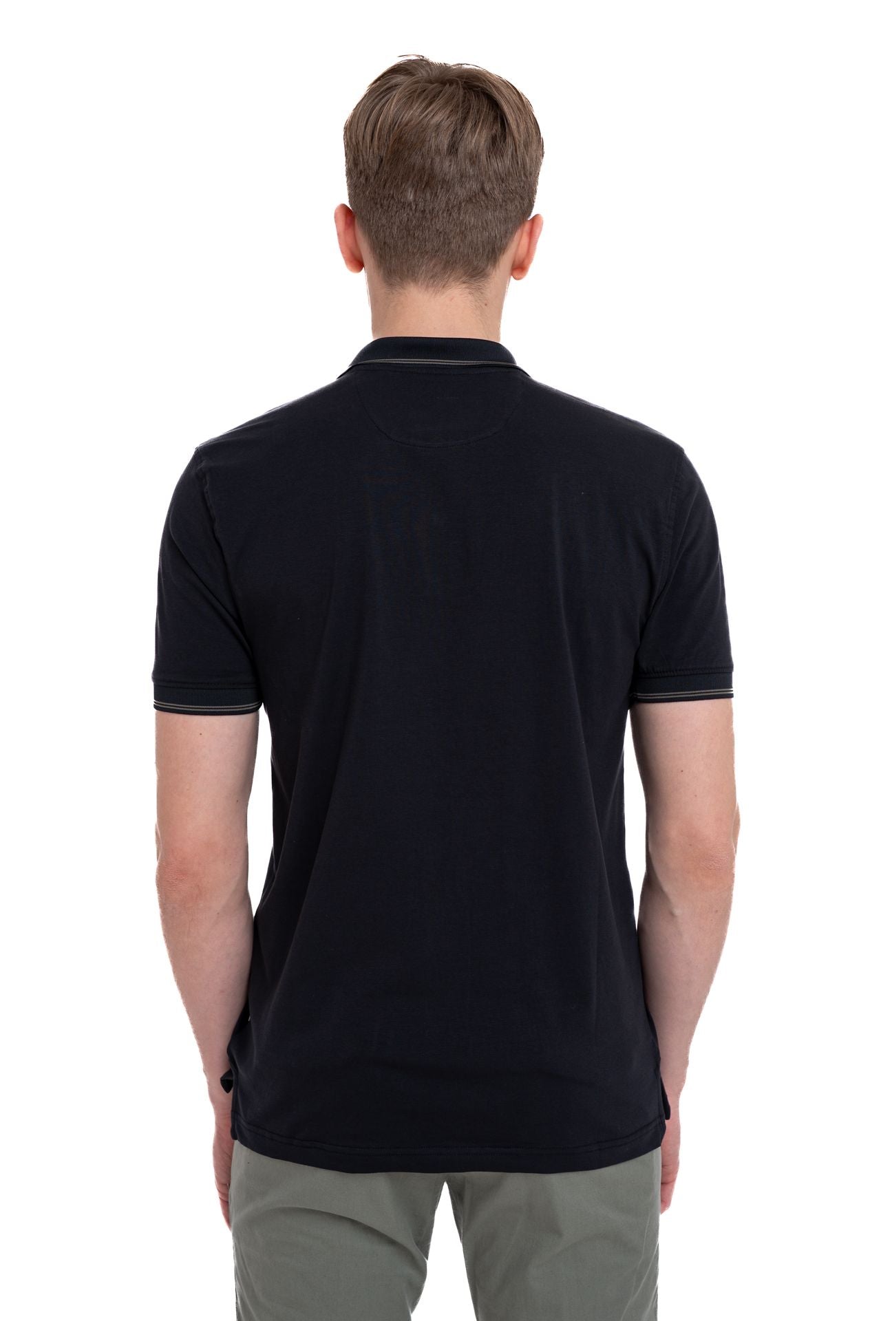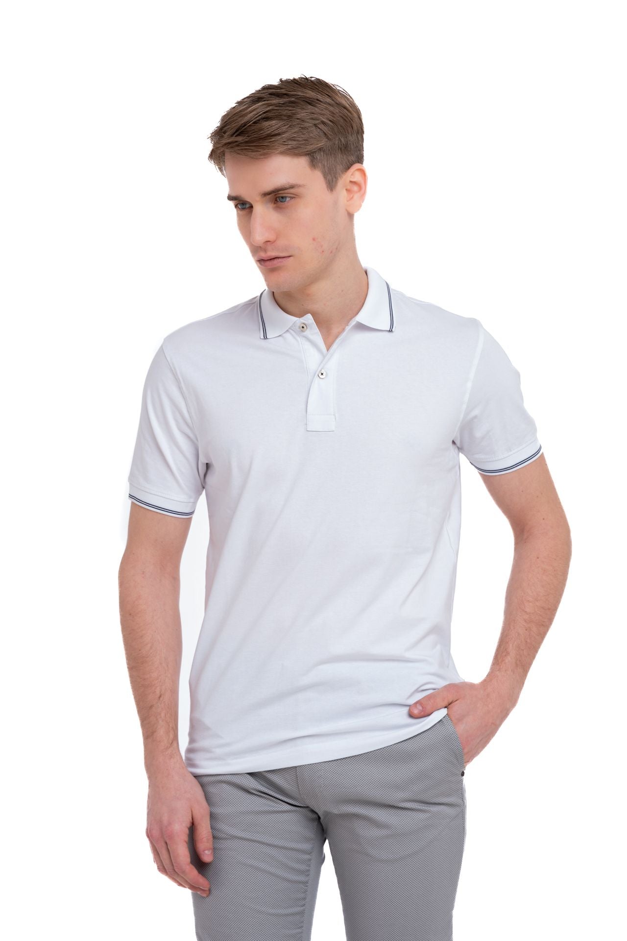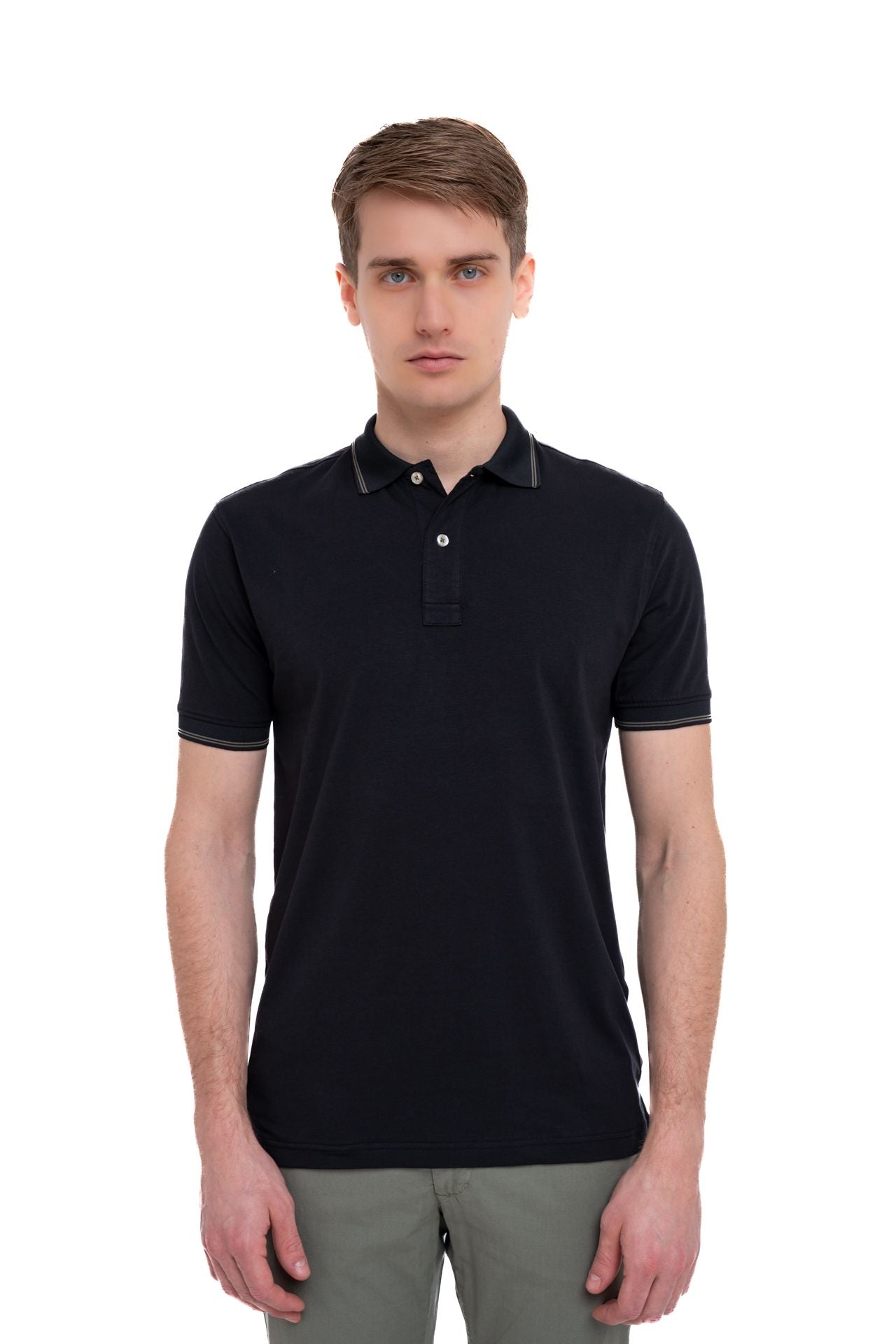 Polo regular a manica corta, in cotone jersey. Il capo è caratterizzato da colletto con dettagli a contrasto di colore, due bottoni di chiusura e spacchetti laterali. Il fondo manica presenta gli stessi colori e dettagli del colletto. La vestibilità risulta regolare.