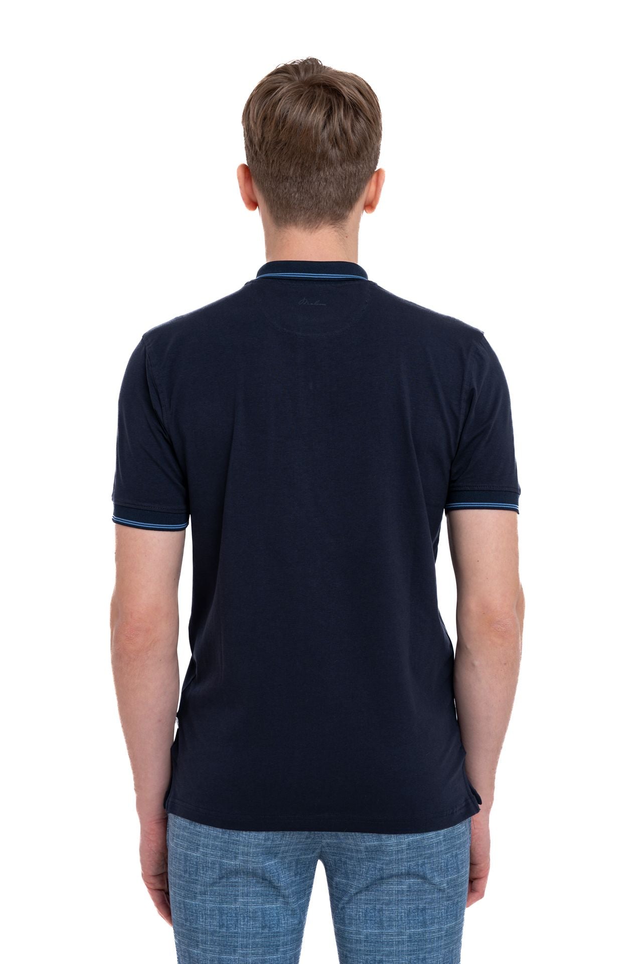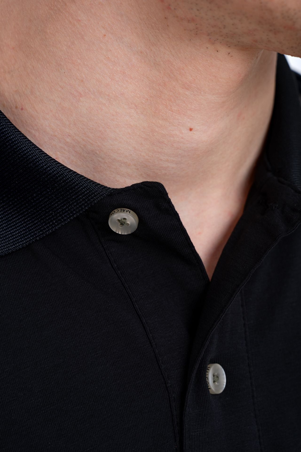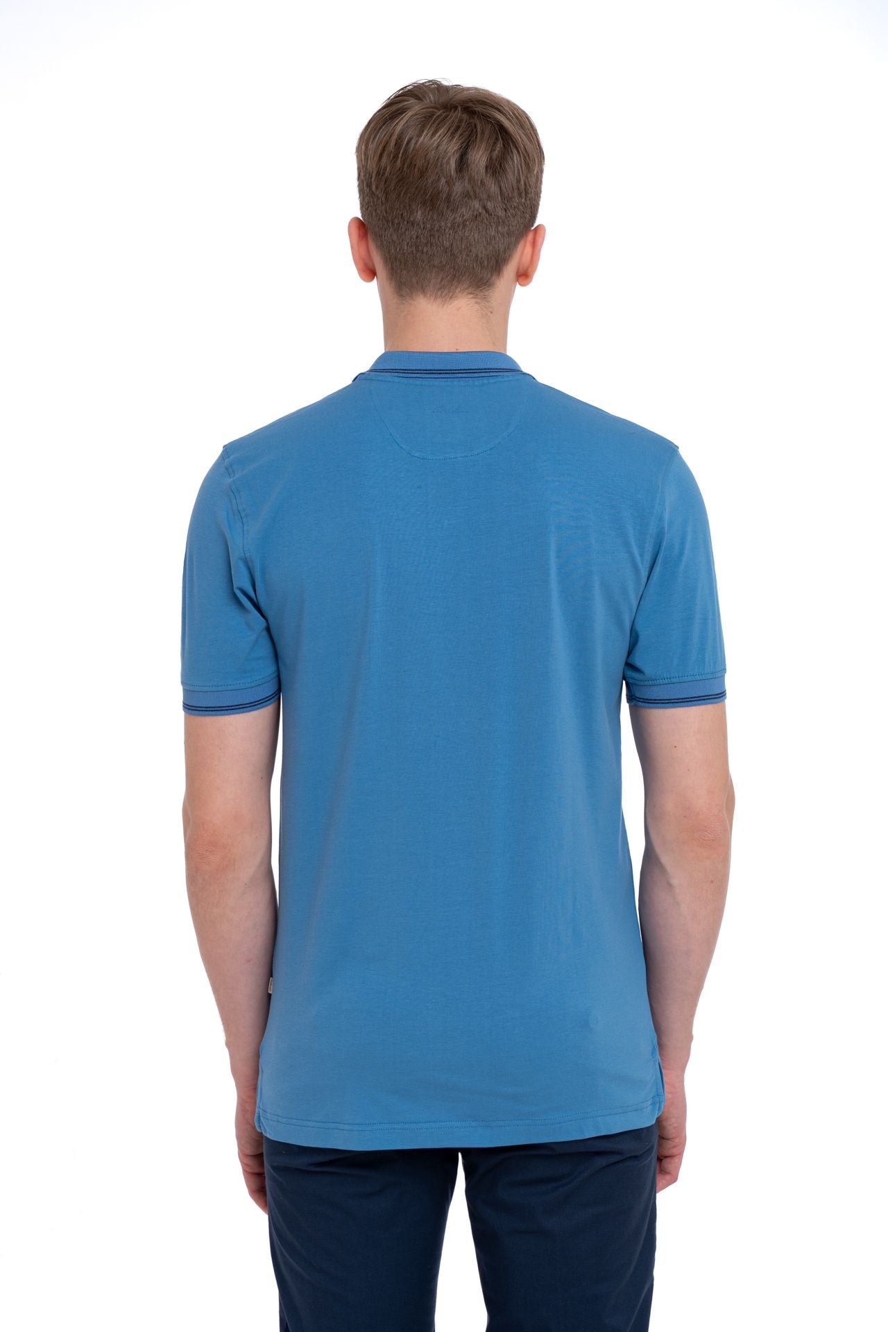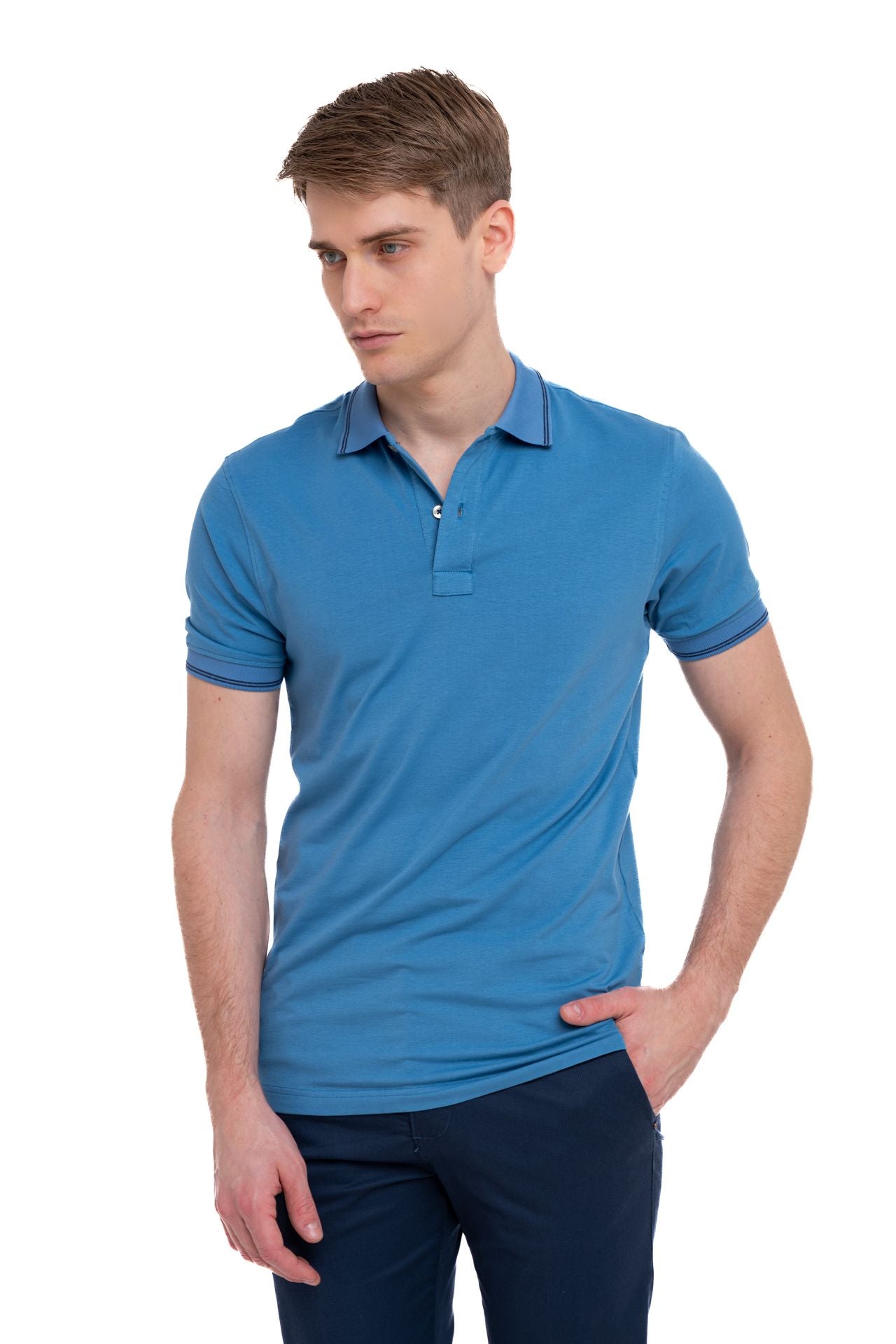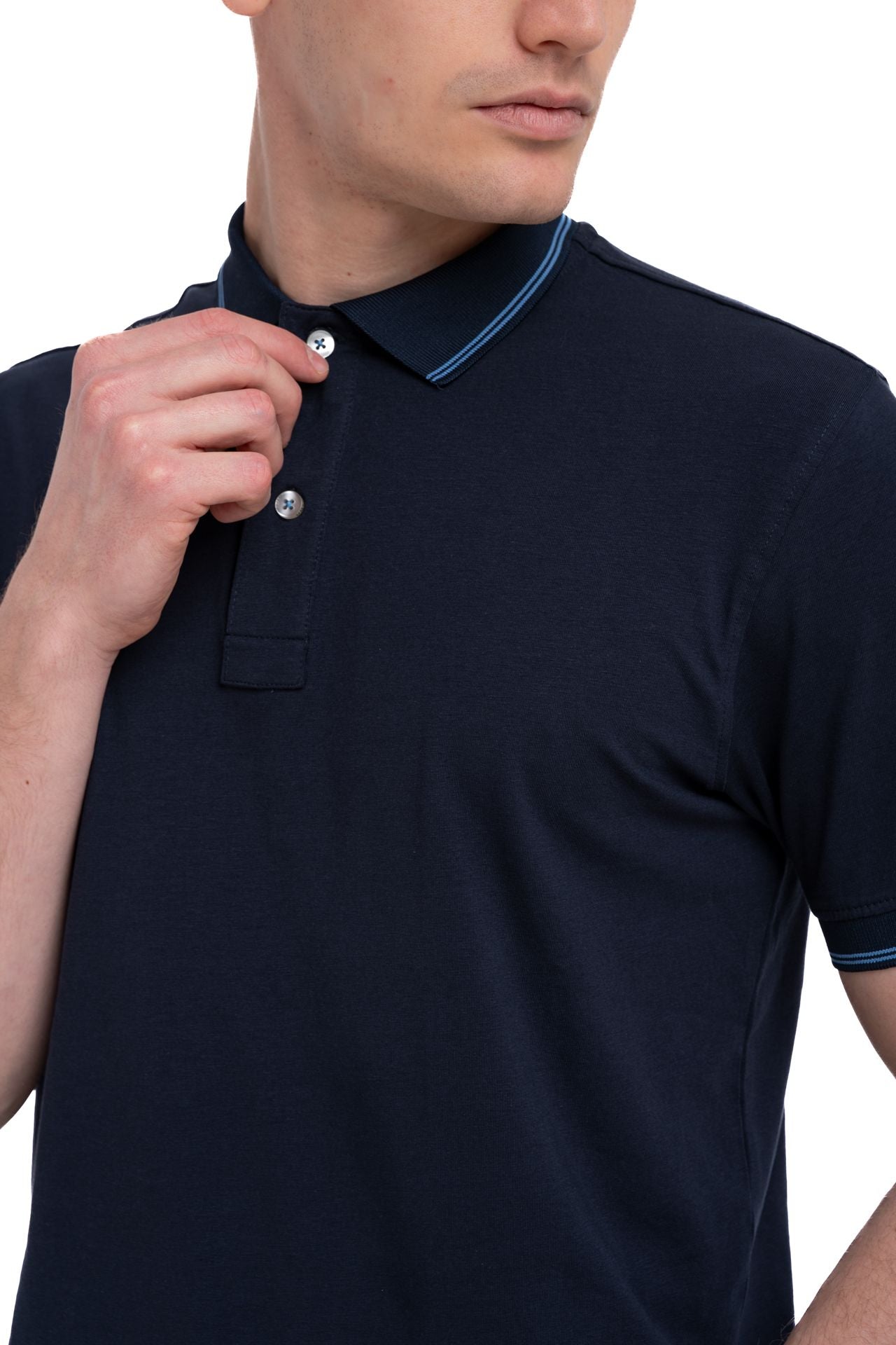 Polo regular a manica corta, in cotone jersey. Il capo è caratterizzato da colletto con dettagli a contrasto di colore, due bottoni di chiusura e spacchetti laterali. Il fondo manica presenta gli stessi colori e dettagli del colletto. La vestibilità risulta regolare.
