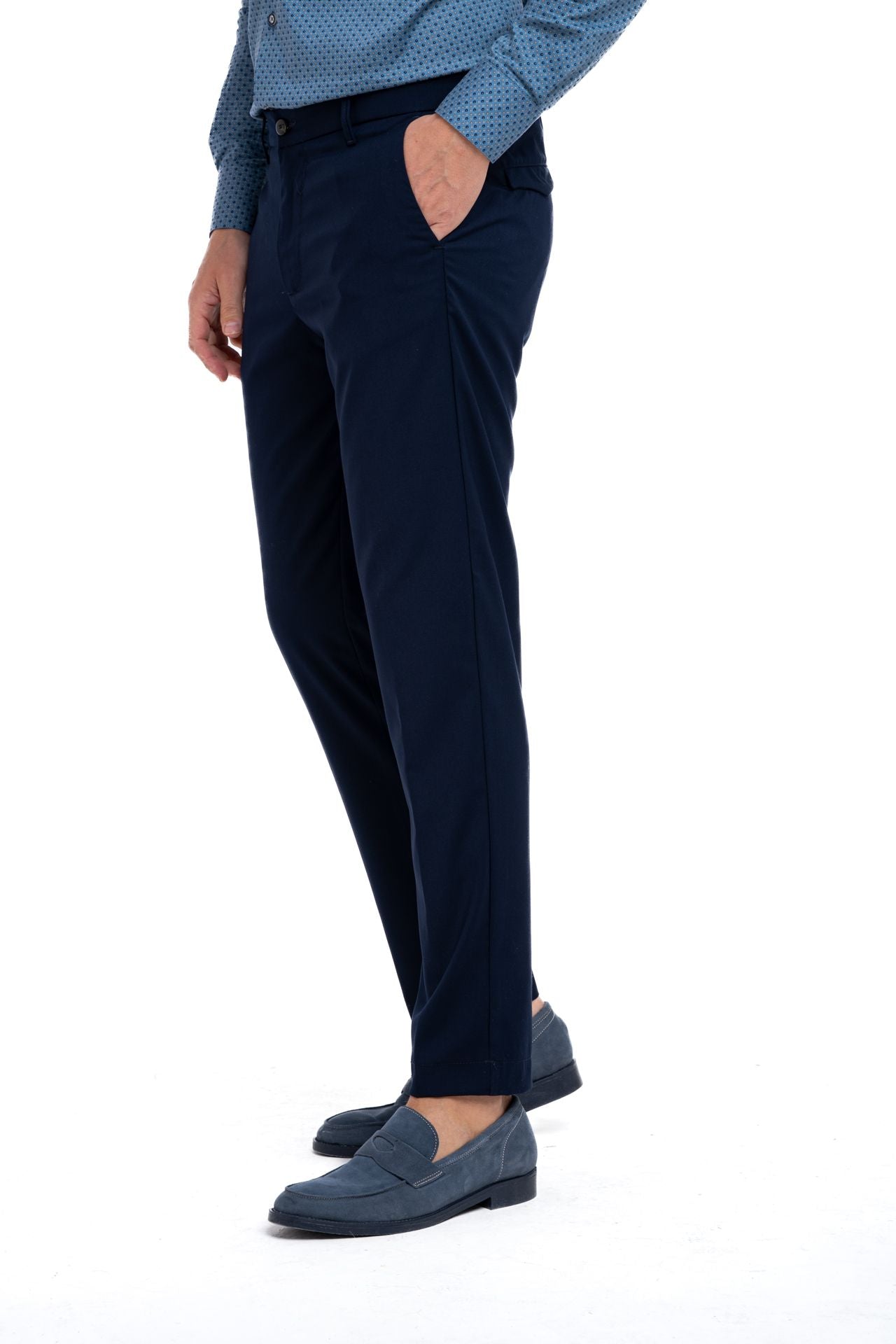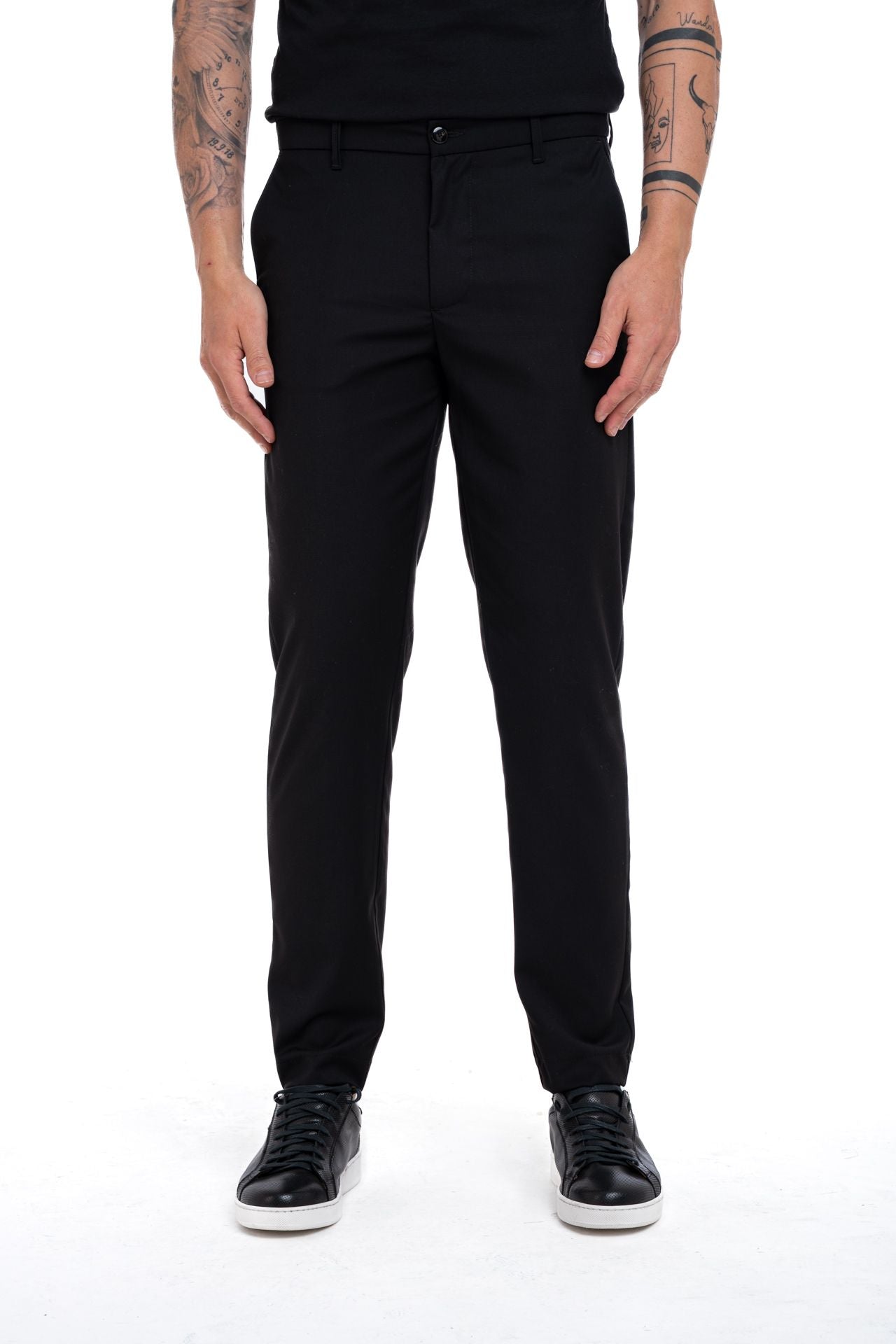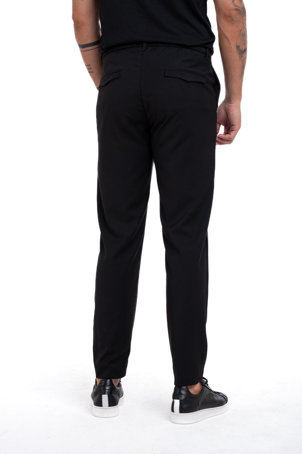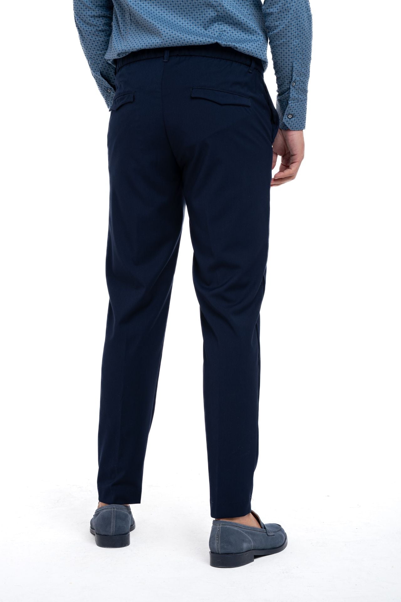 Pantaloni Made in Italy slim fit, caratterizzati da chiusura frontale con zip nascosta, cinta con bottone, passanti per cintura ed elastico nella porzione posteriore che conferisce comfort e comodità . Tasche laterali a filo con taglio "tasca America" e tasche posteriori ambedue a pattina. Composizione: 69% Poliestere, 29% Viscosa, 2% Elastan. Altezza modello 189cm, Taglia indossata 48.