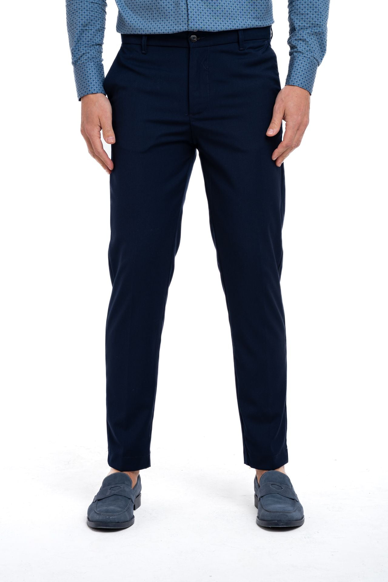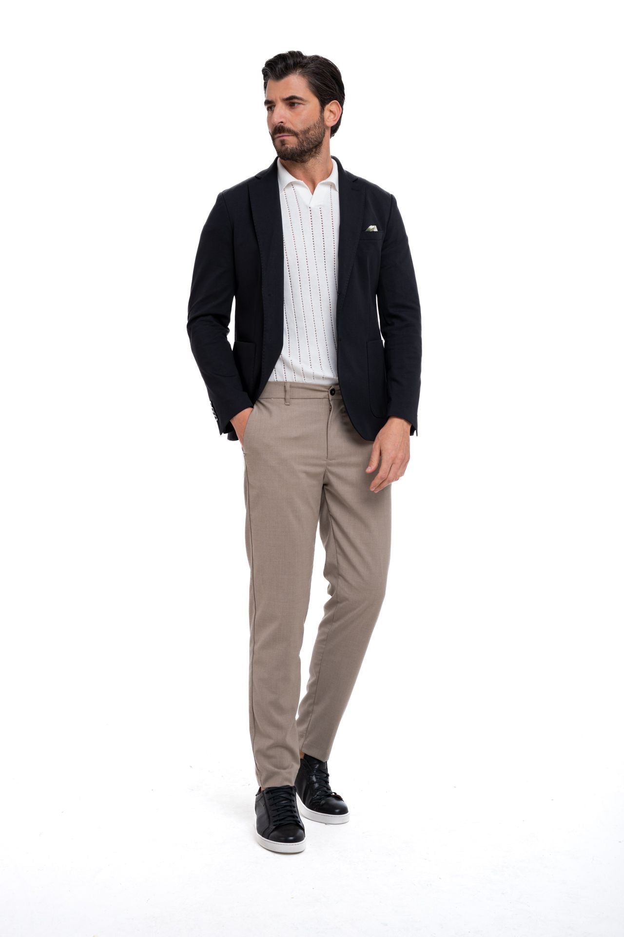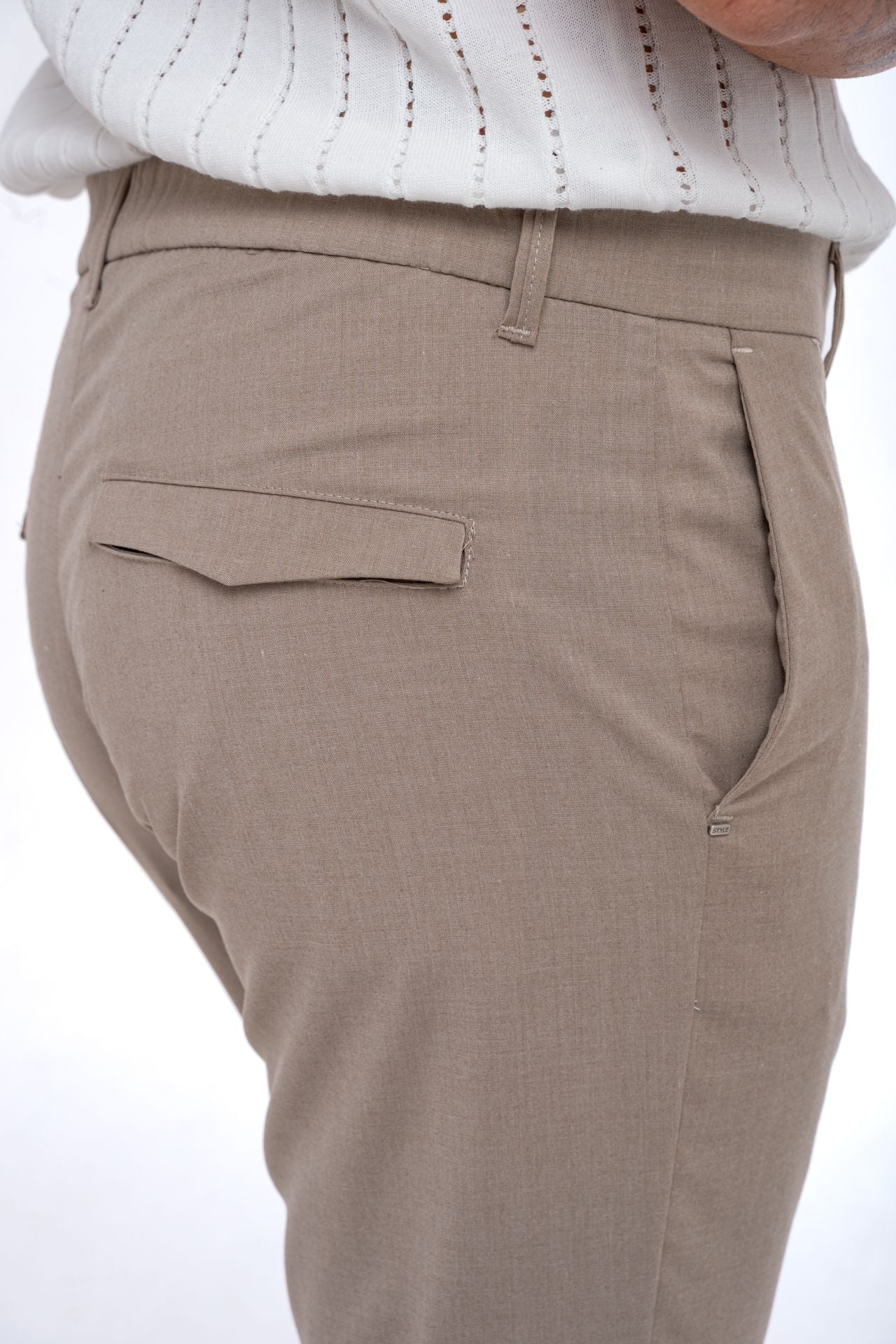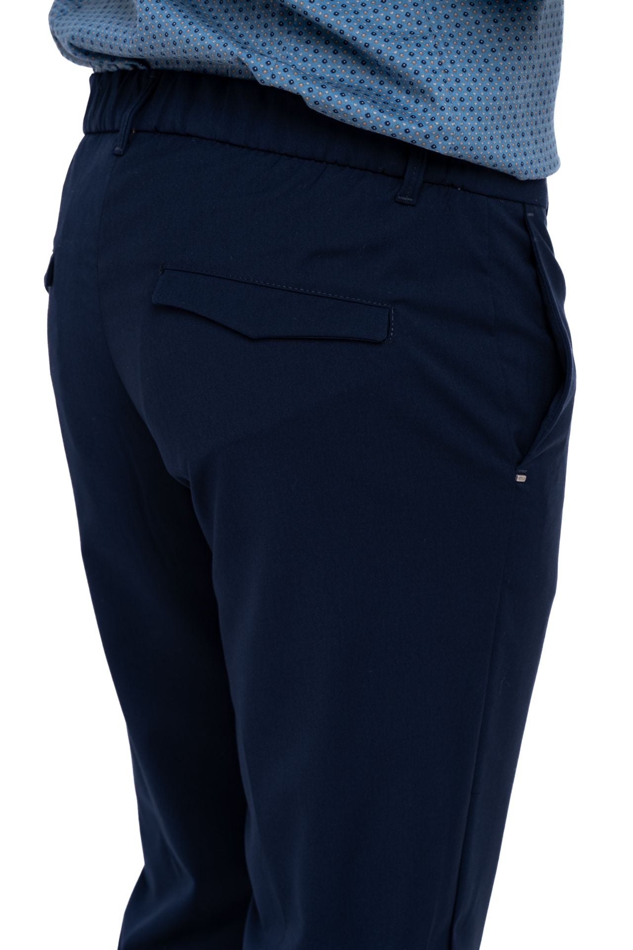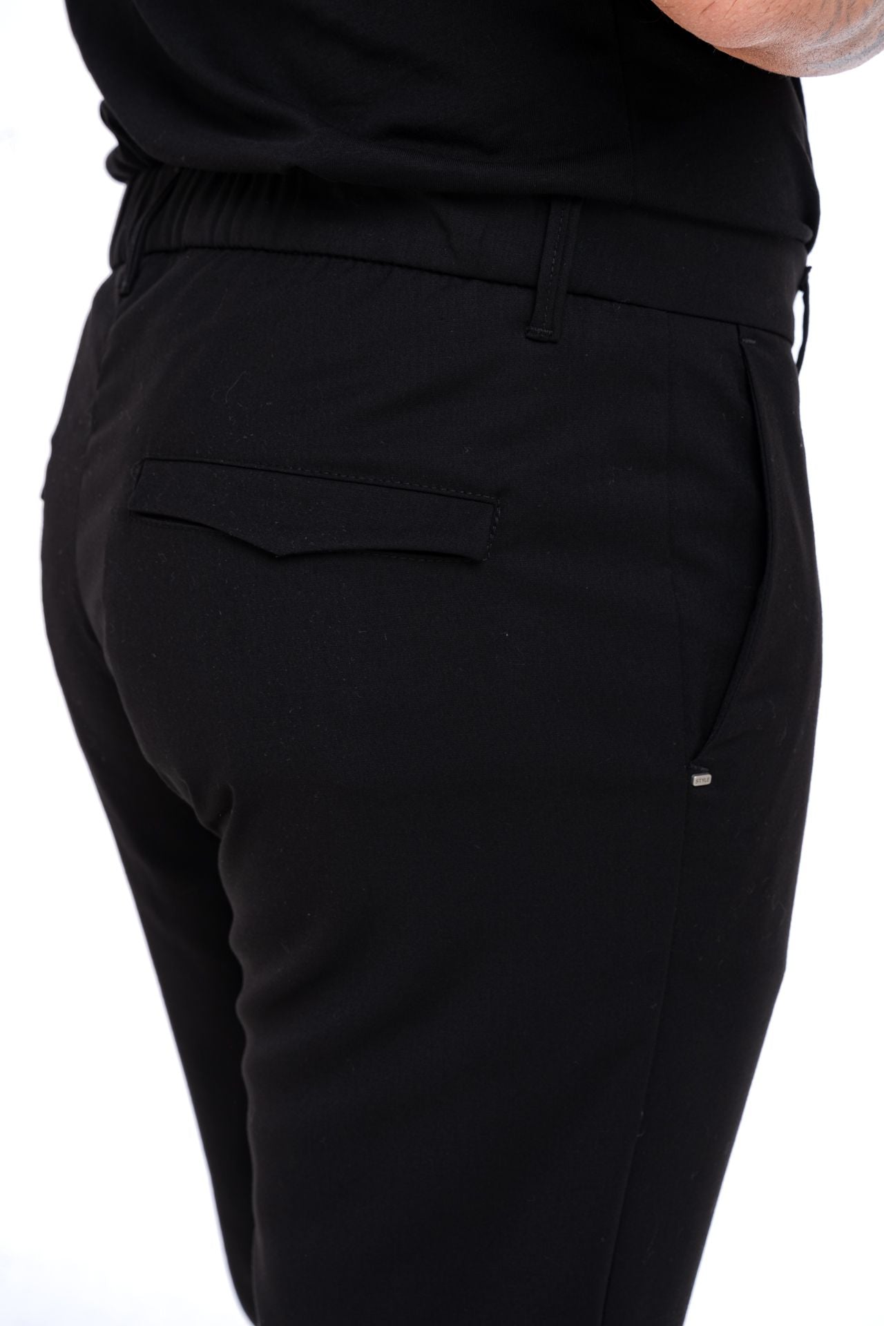 Pantaloni Made in Italy slim fit, caratterizzati da chiusura frontale con zip nascosta, cinta con bottone, passanti per cintura ed elastico nella porzione posteriore che conferisce comfort e comodità . Tasche laterali a filo con taglio "tasca America" e tasche posteriori ambedue a pattina. Composizione: 69% Poliestere, 29% Viscosa, 2% Elastan. Altezza modello 189cm, Taglia indossata 48.
