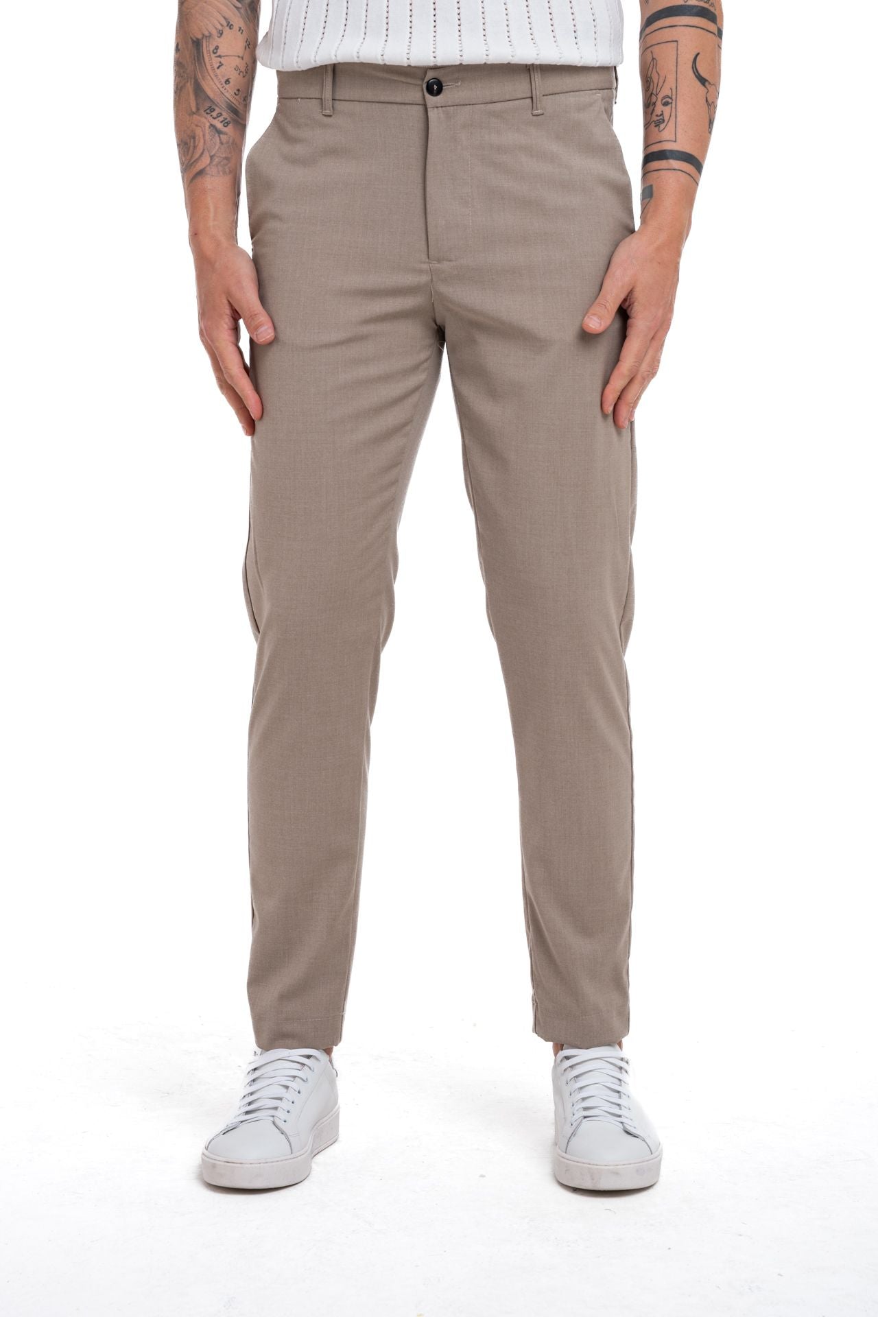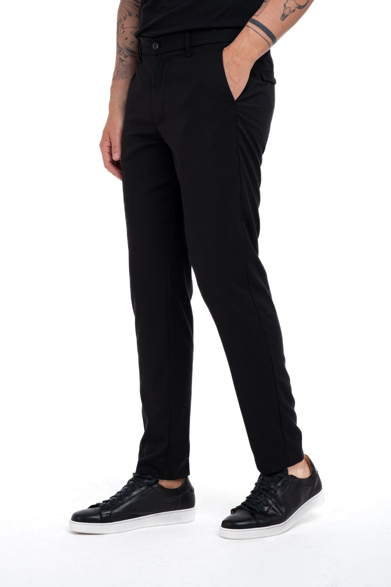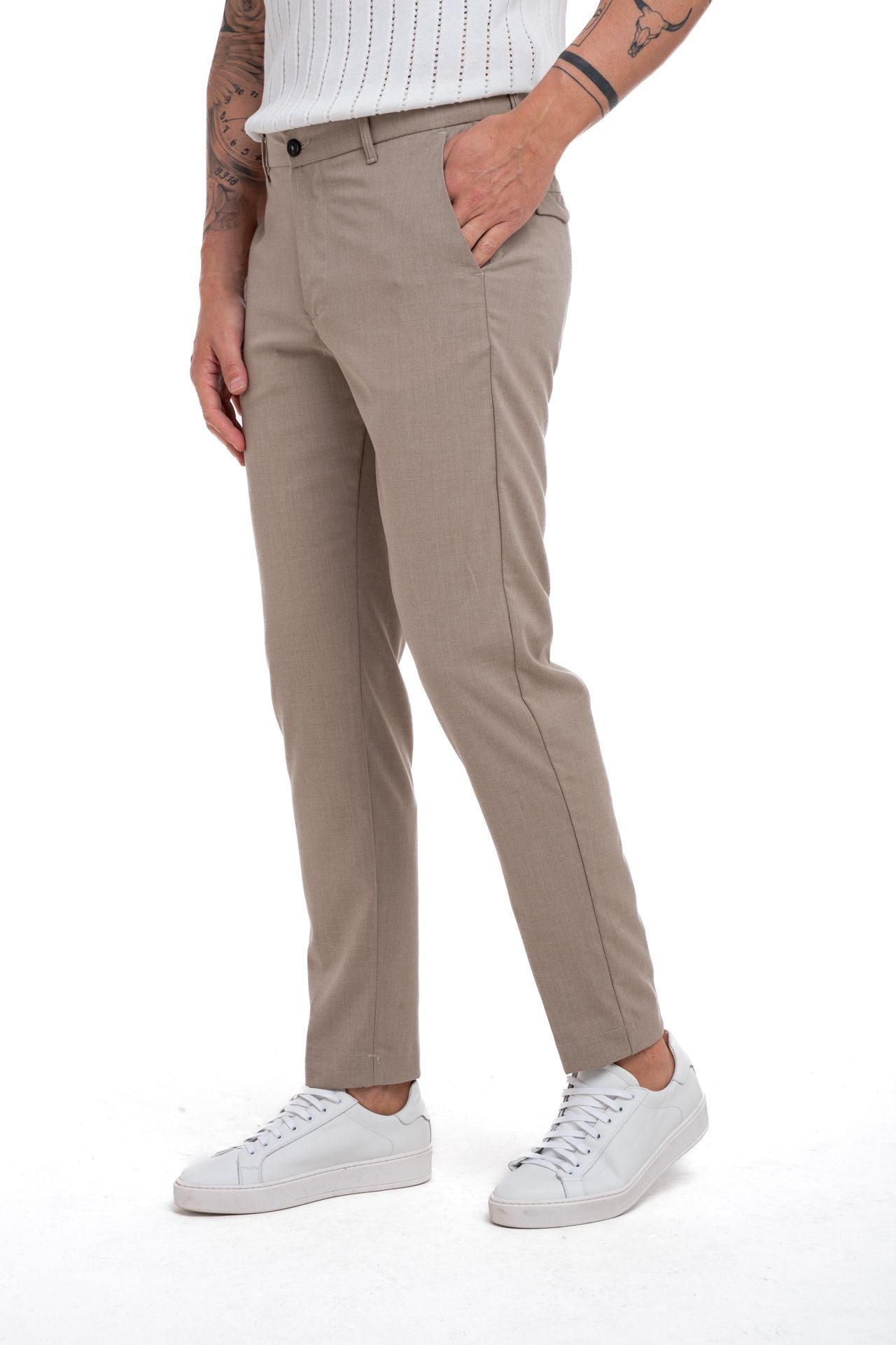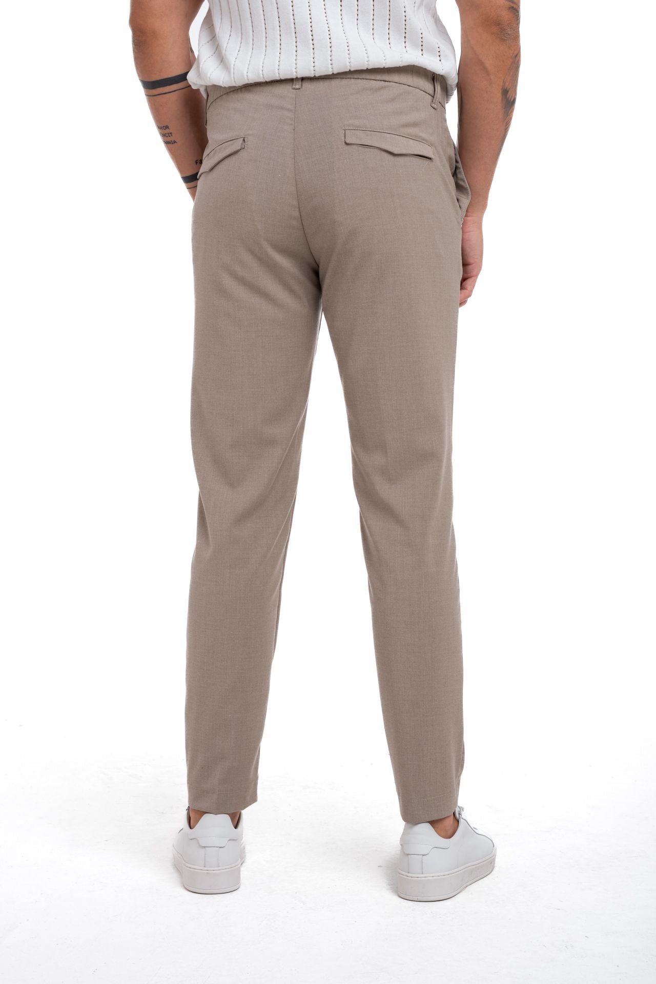 Pantaloni Made in Italy slim fit, caratterizzati da chiusura frontale con zip nascosta, cinta con bottone, passanti per cintura ed elastico nella porzione posteriore che conferisce comfort e comodità . Tasche laterali a filo con taglio "tasca America" e tasche posteriori ambedue a pattina. Composizione: 69% Poliestere, 29% Viscosa, 2% Elastan. Altezza modello 189cm, Taglia indossata 48.