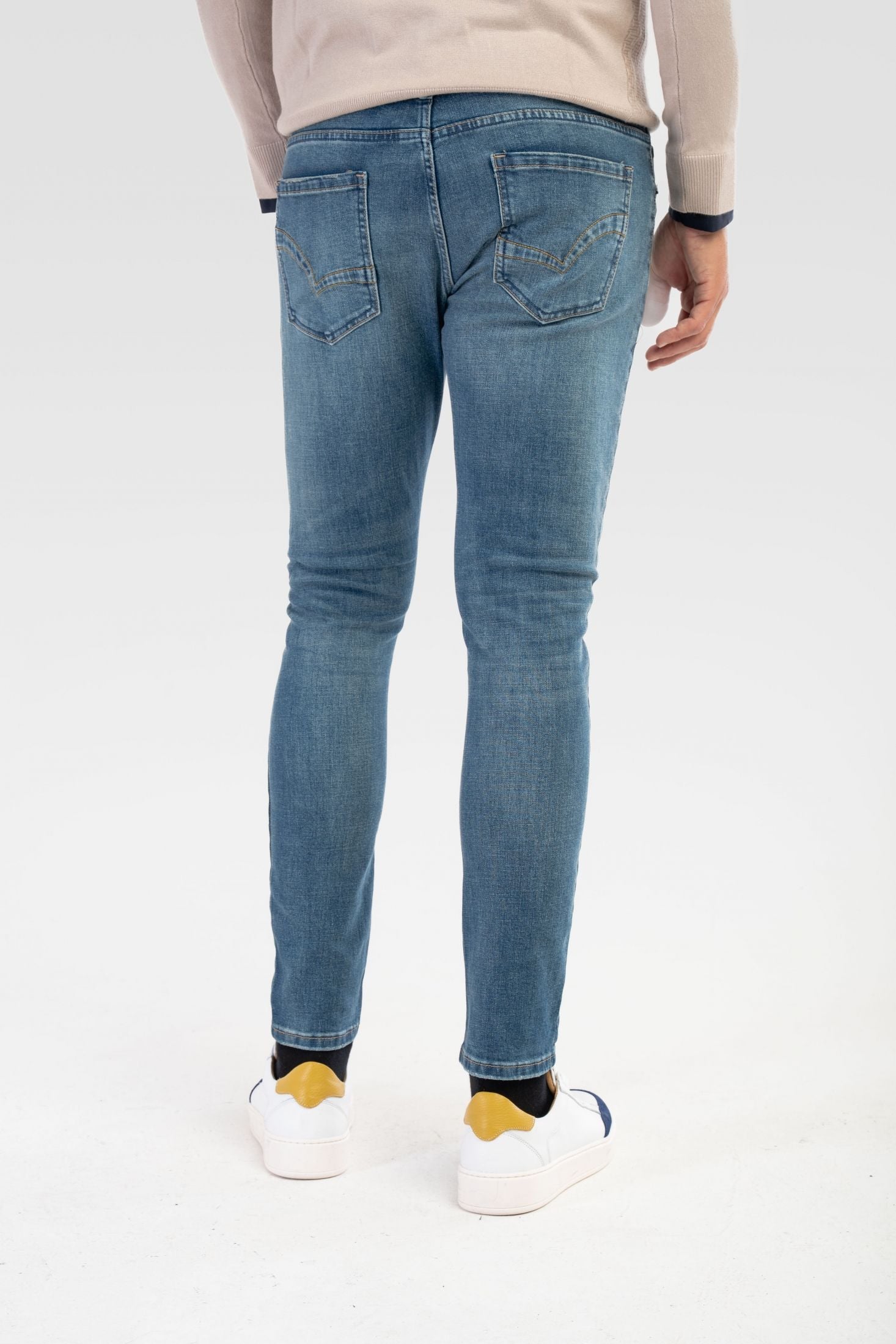 Jeans cinque tasche con vestibilità slim, caratterizzato da leggere sfumature tono su tono, portamonete frontale, abbottonatura con zip e bottone in vita. Realizzato in denim confortevole con una percentuale di fibre stretch.