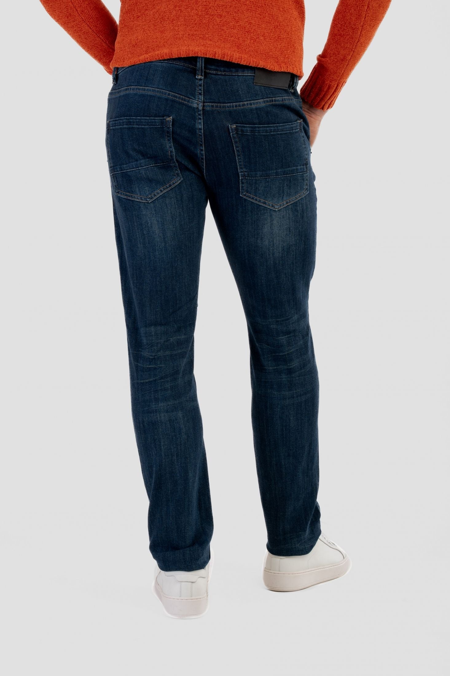 Jeans tasca America con vestibilità new regular, caratterizzato da lievi sbavature tono su tono, cuciture a contrasto, abbottonatura con zip e bottone in vita. Tasche posteriori a toppa e taschino portamonete anteriore. Realizzato in denim confortevole con una percentuale di fibre stretch.