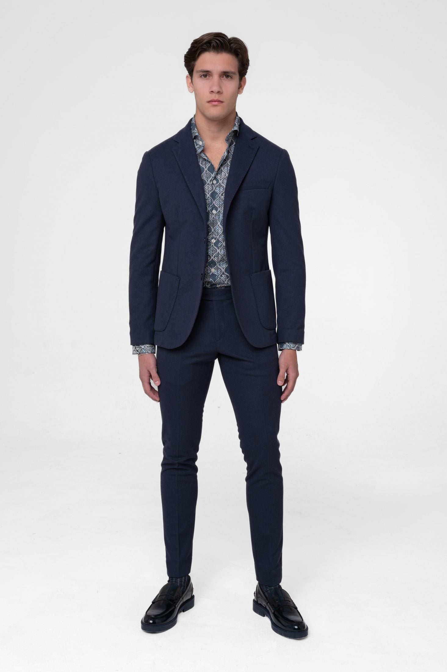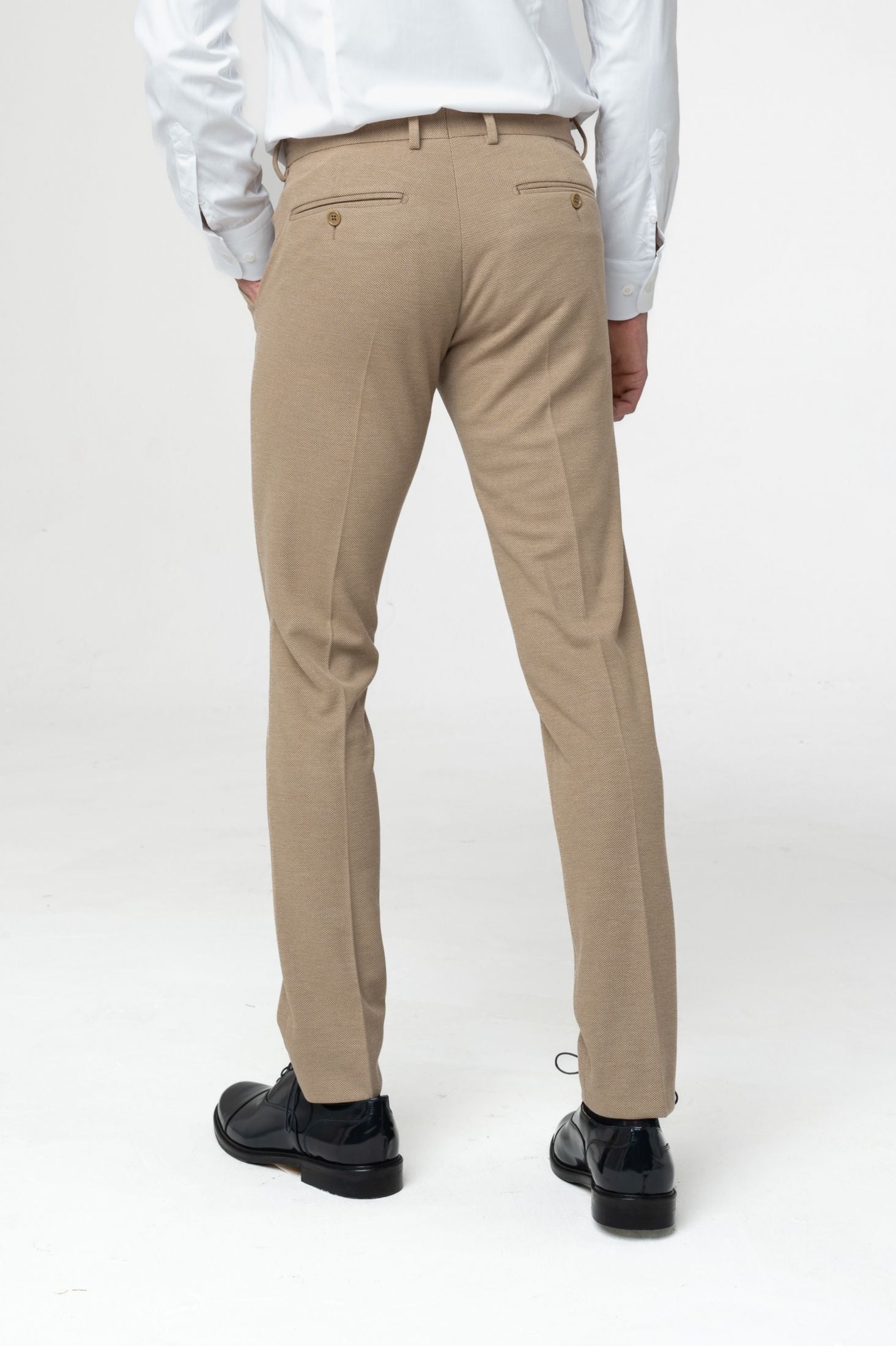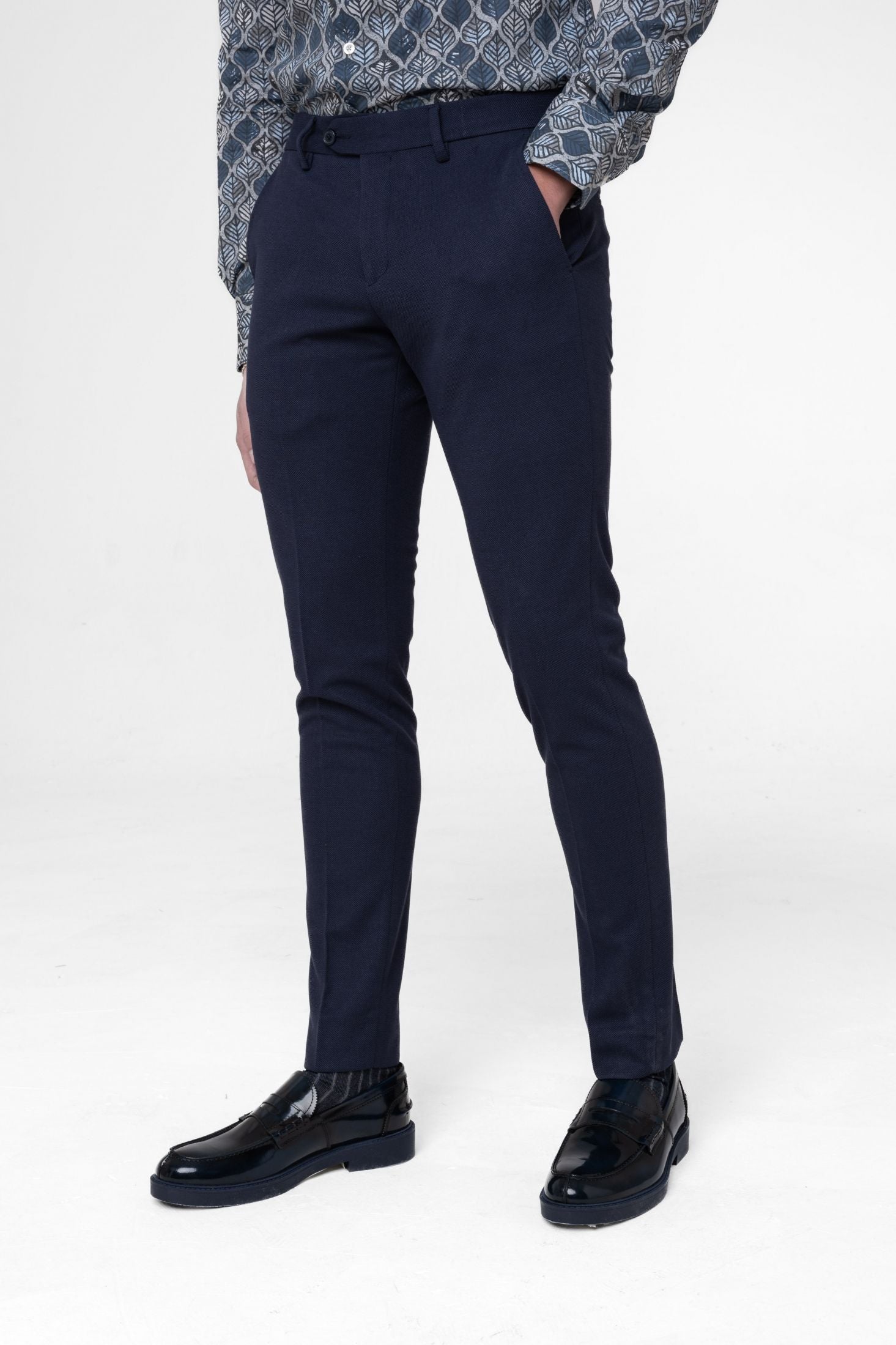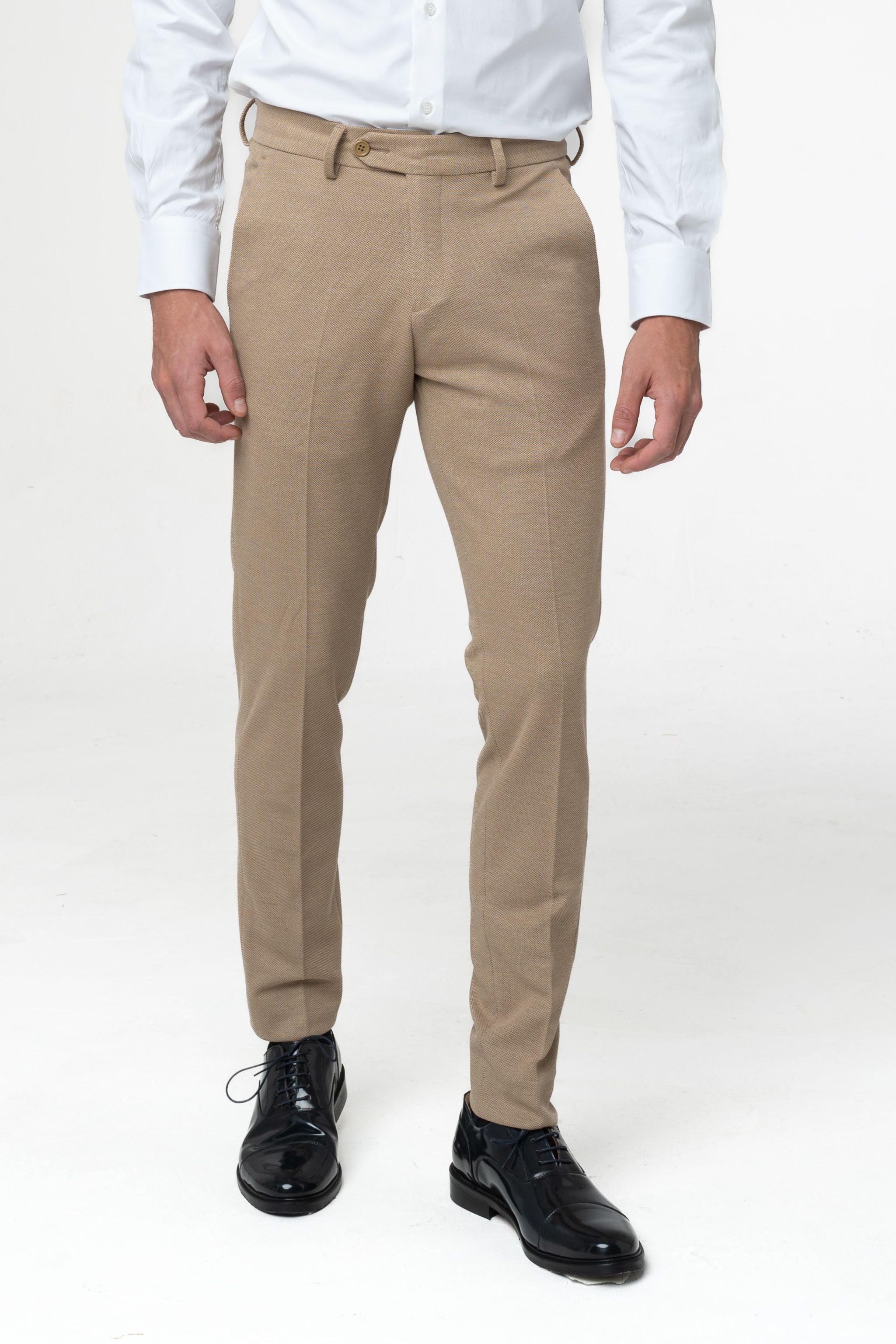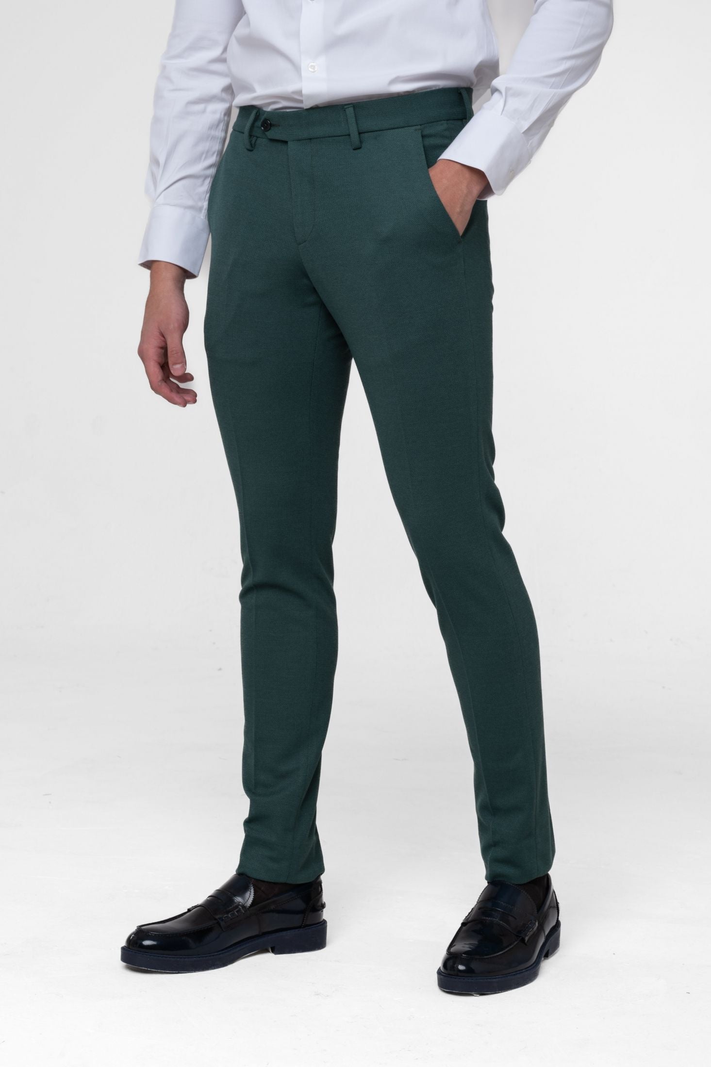 Pantaloni eleganti Made in Italy slim fit, con fitta trama a nido d'ape caratterizzati da chiusura centrale a zip nascosta e cinta allungata, bottoni e passanti per cintura.