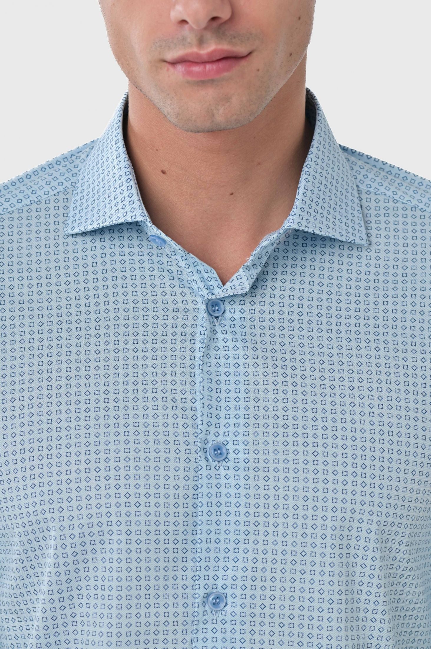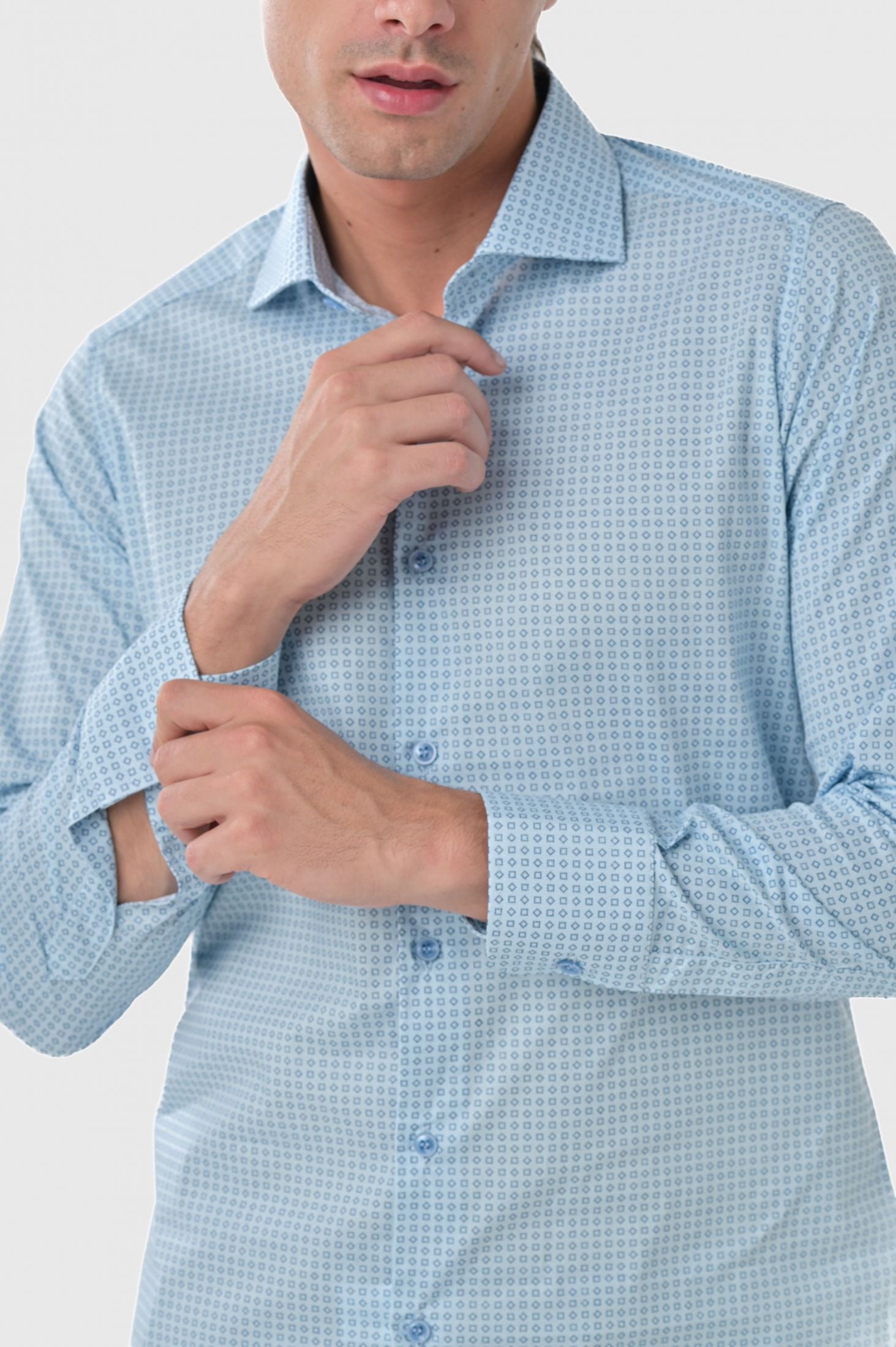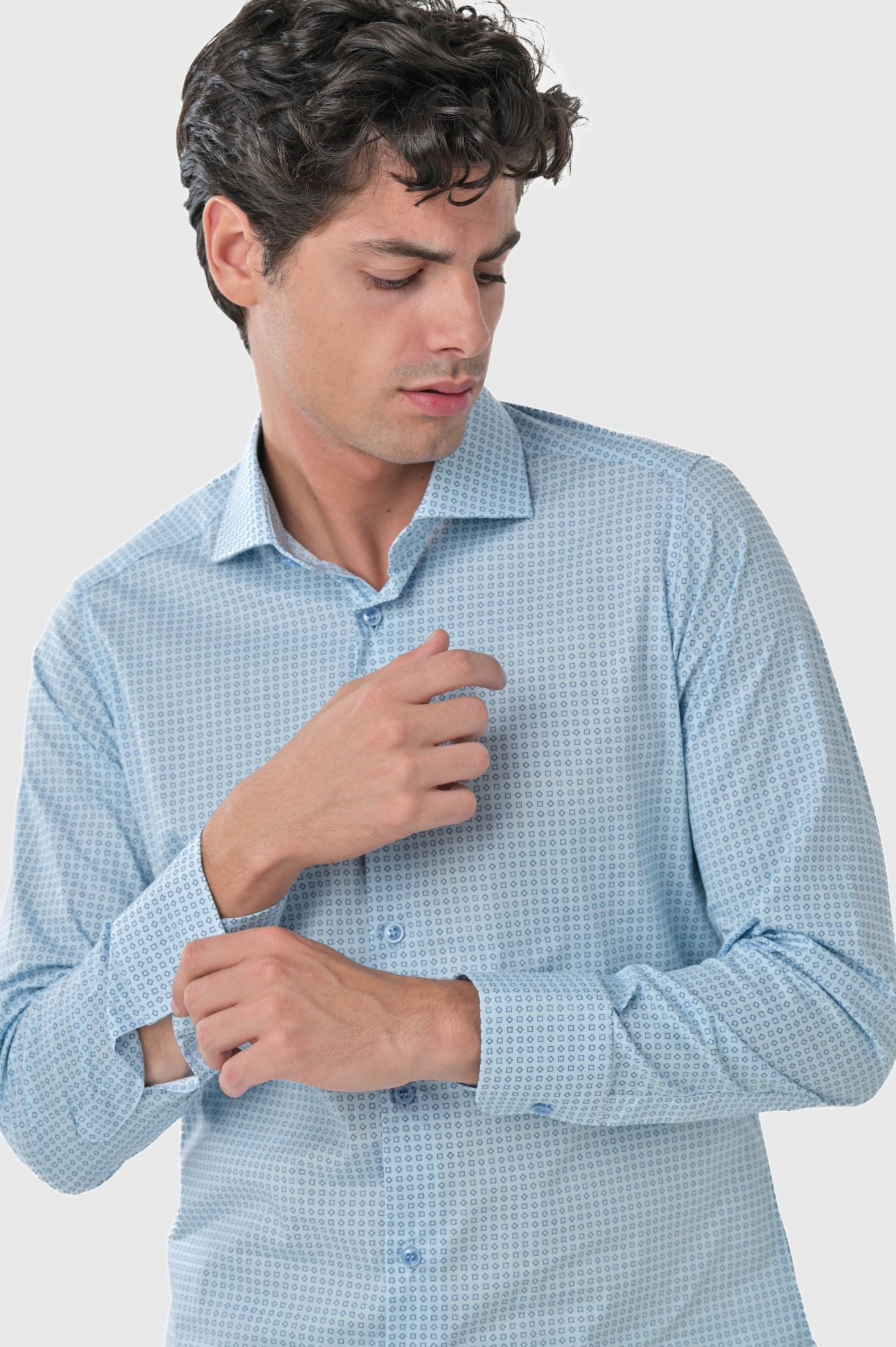 Camicia regular fit micro fantasia, made in Italy in cotone manica lunga; caratterizzata da colletto alla francese ed abbottonatura classica.