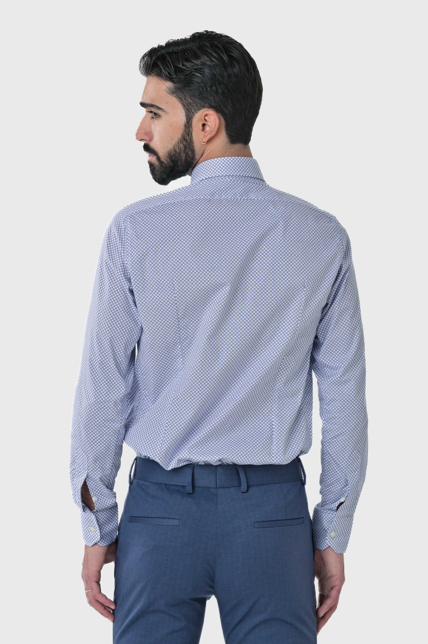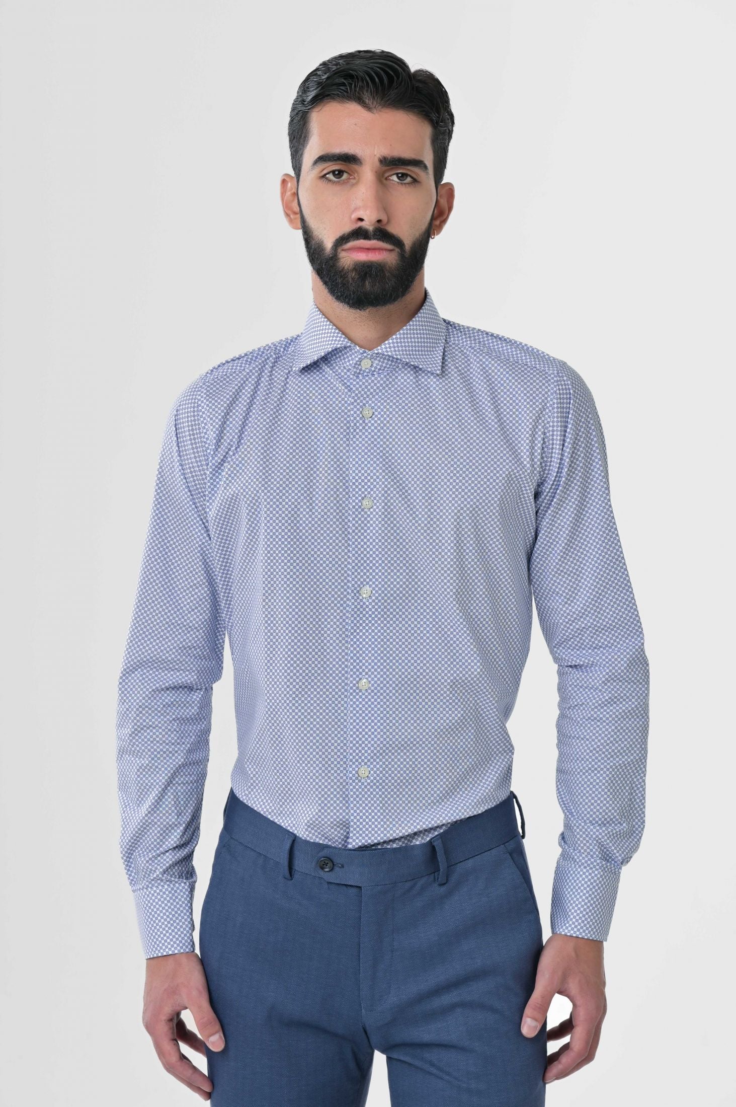 Camicia regular micro fantasia made in Italy a manica lunga; Caratterizzata da colletto alla francese ed abbottonatura classica.