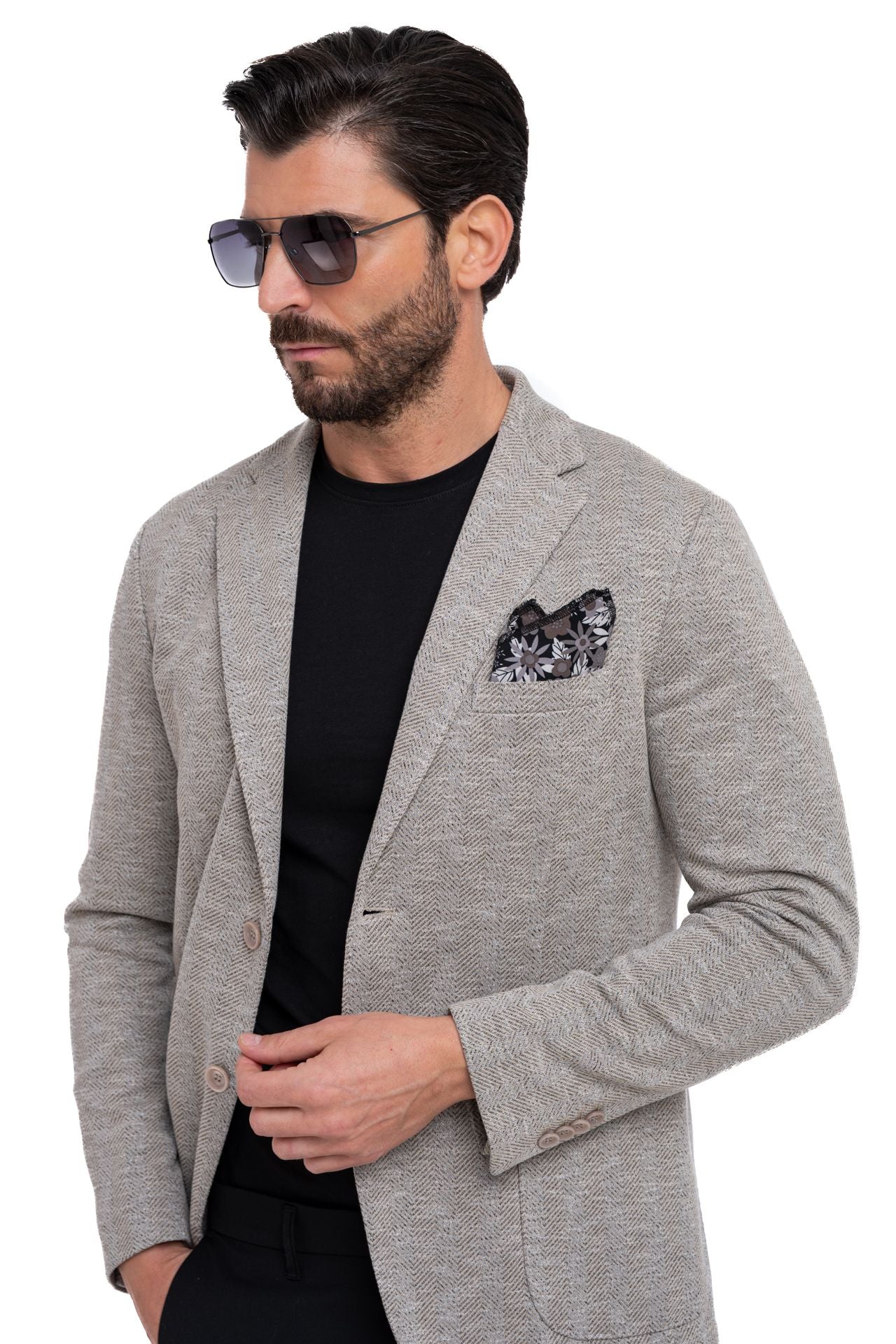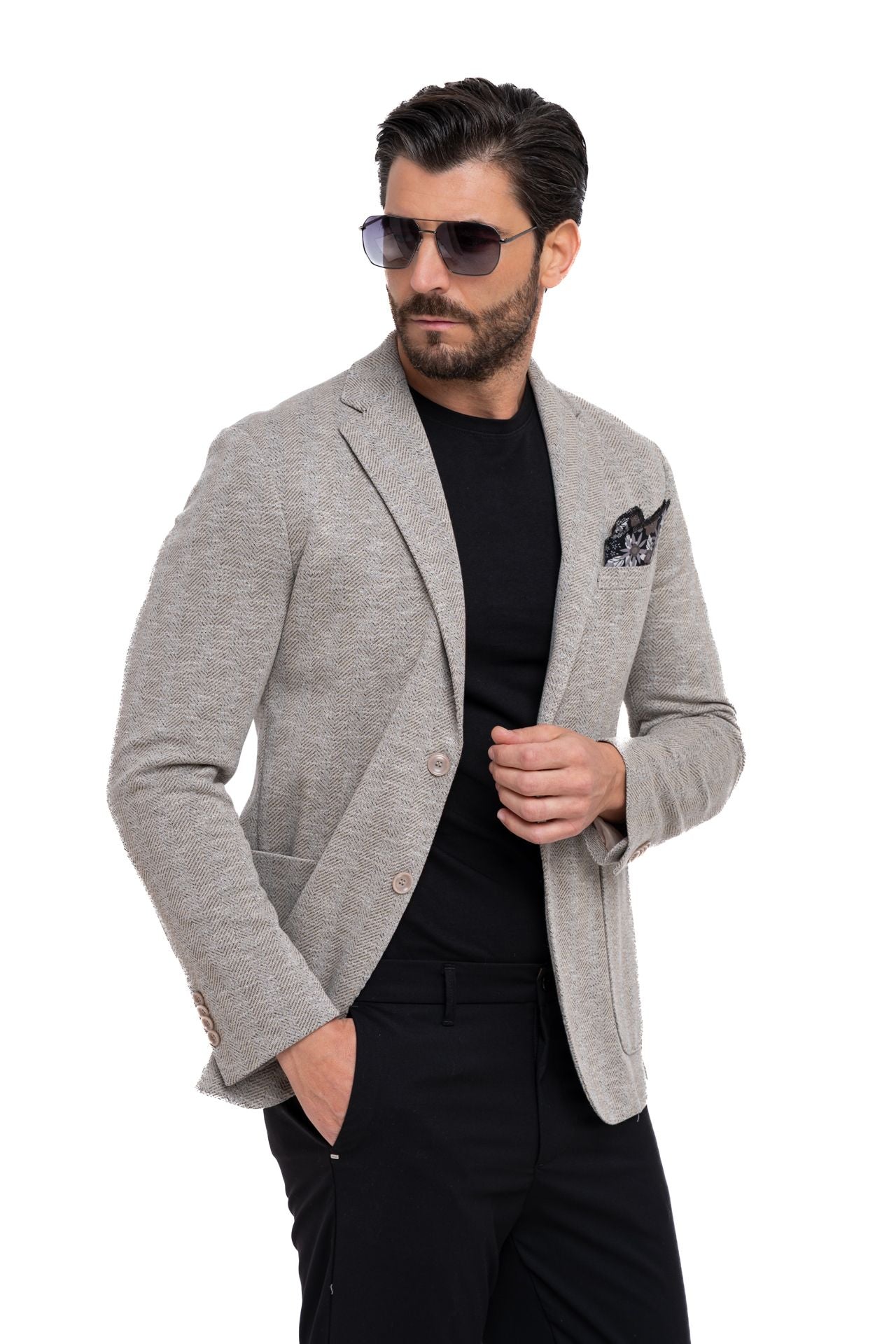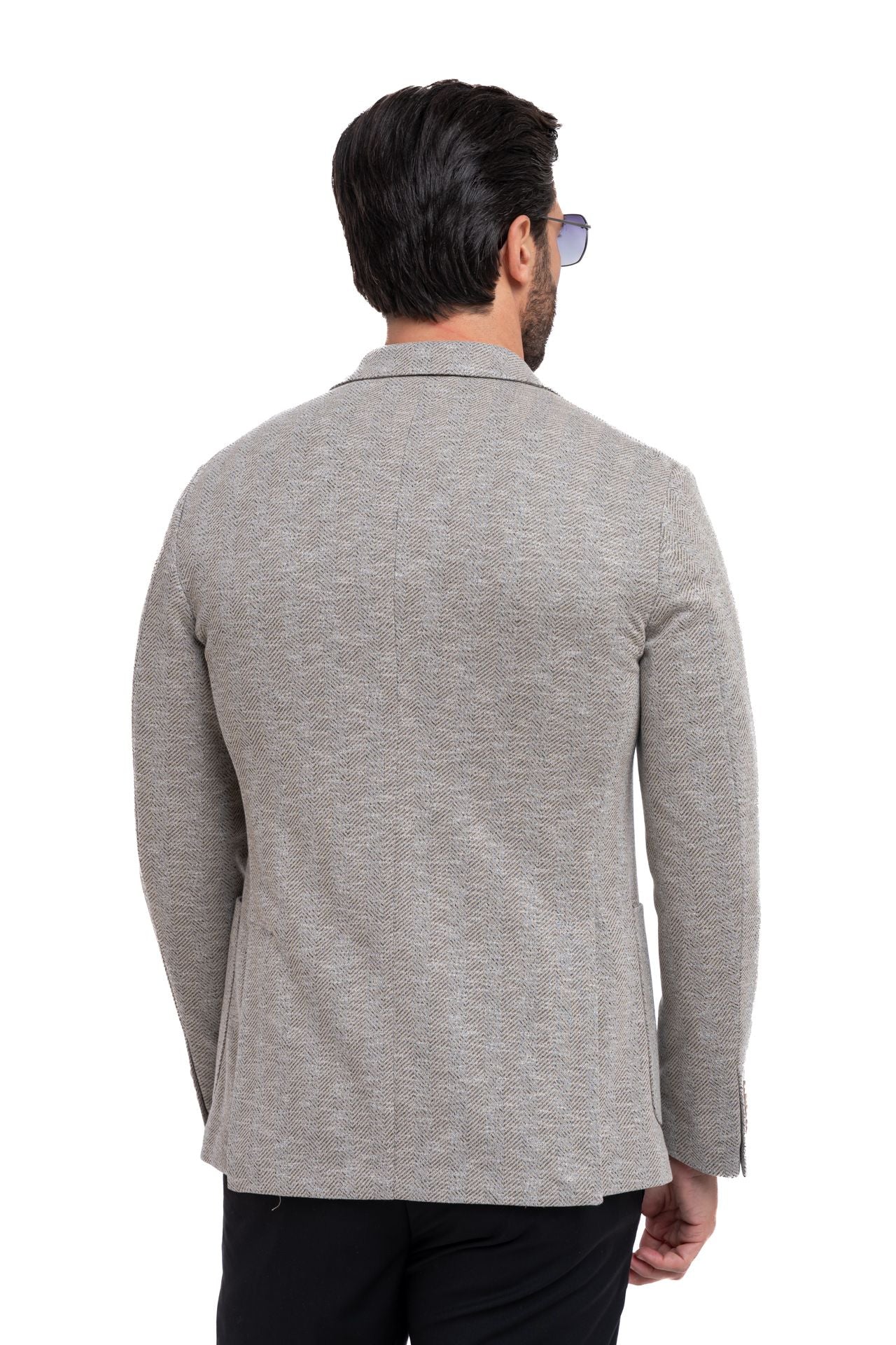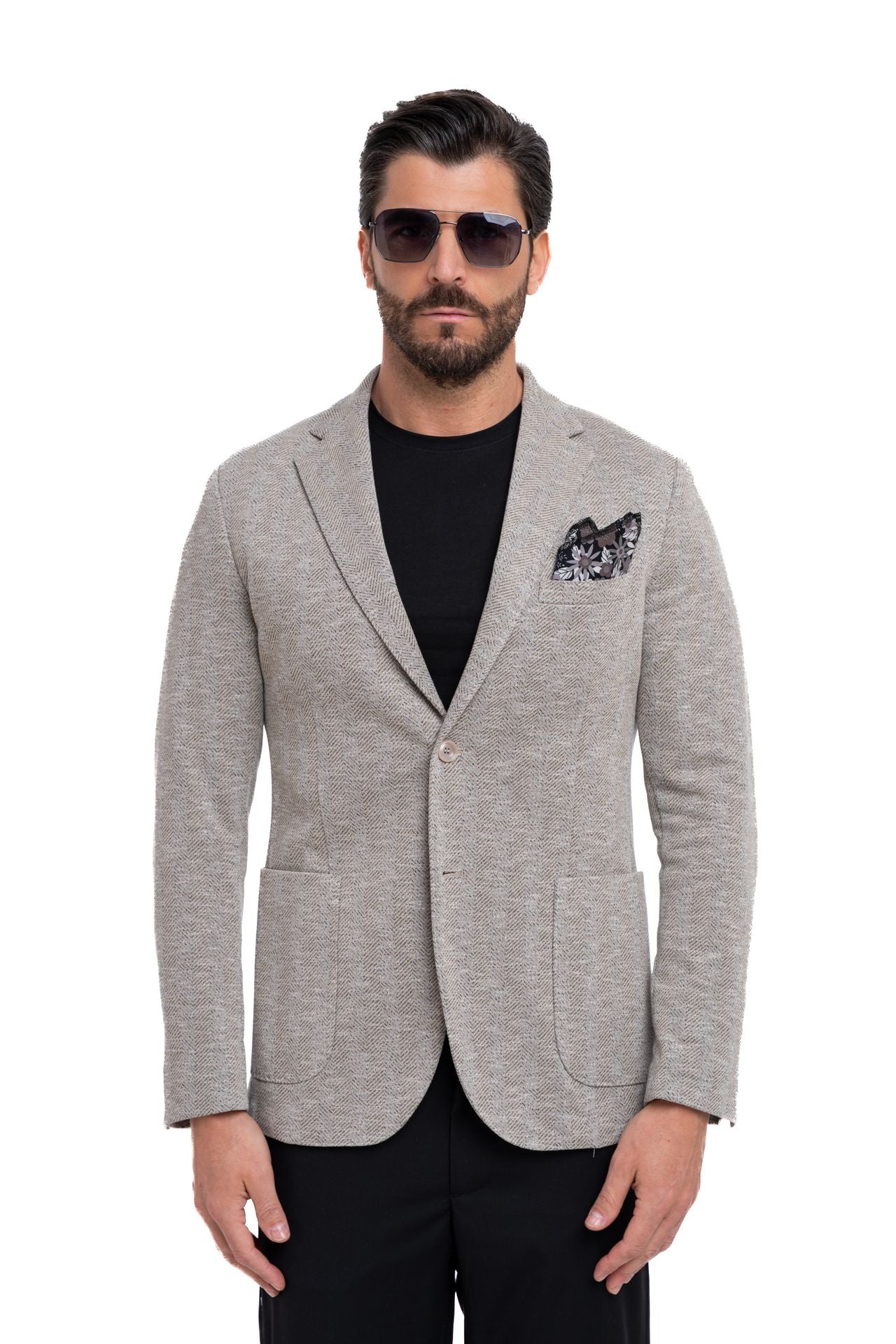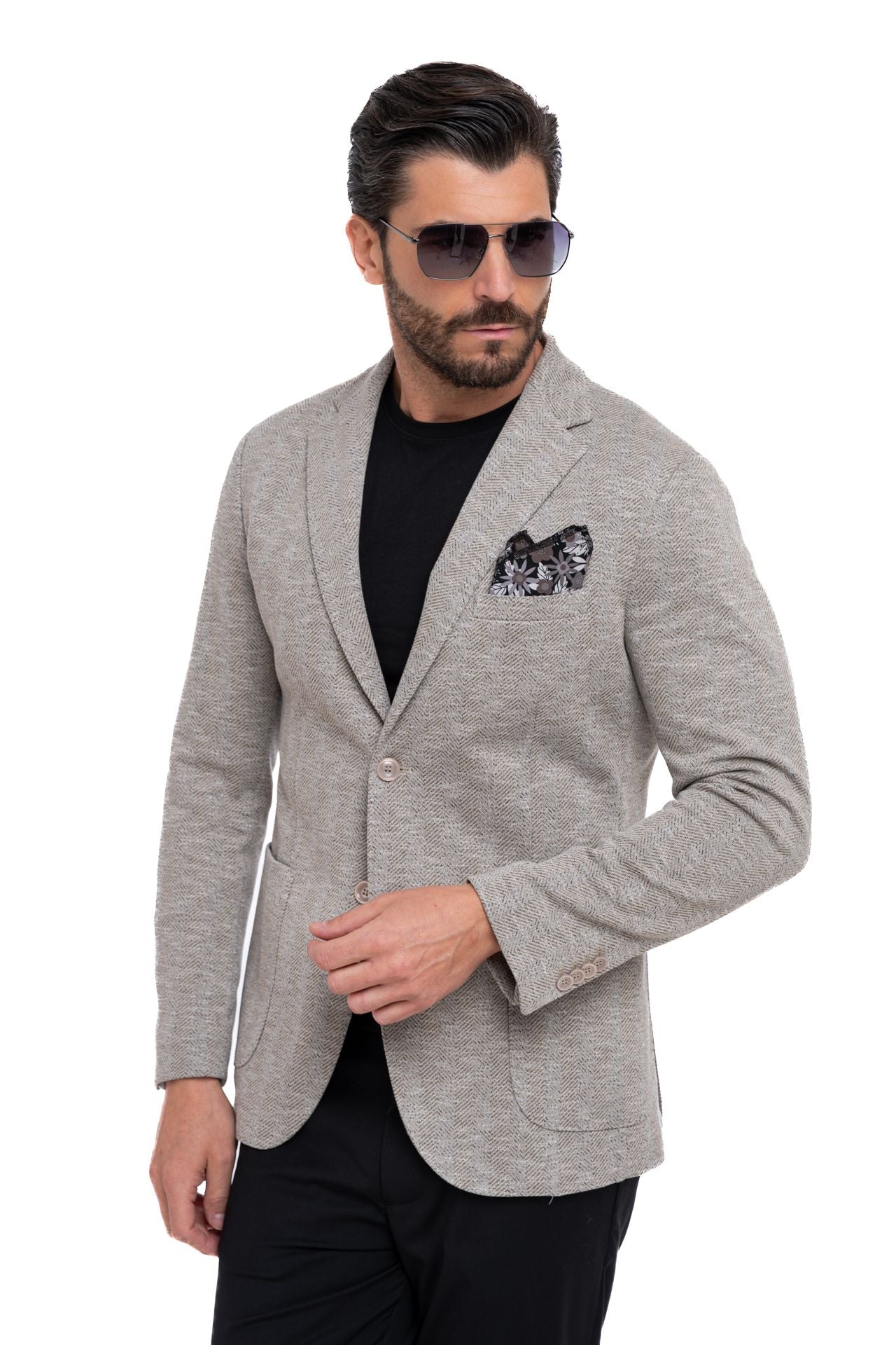 Giacca Made in Italy Slim fit, realizzata in un pregiato tessuto in maglia misto cotone e caratterizzata da un'elegante trama spigata con colori a contrasto. Questa giacca decostruita e sfoderata è pensata per offrire leggerezza e comfort senza rinunciare all'eleganza. Completano il design un rever classico, due tasche a toppa sul fondo, un taschino porta fazzoletto e due pratici taschini interni di cui uno con chiusura a bottone. Infine la presenza di un doppio spacco sul fondo garantisce una maggiore libertà di movimento. Perfetta per un look buisness, casual e occasioni eleganti. La seguente giacca è coordinabile con il gilet del medesimo tessuto e colore.