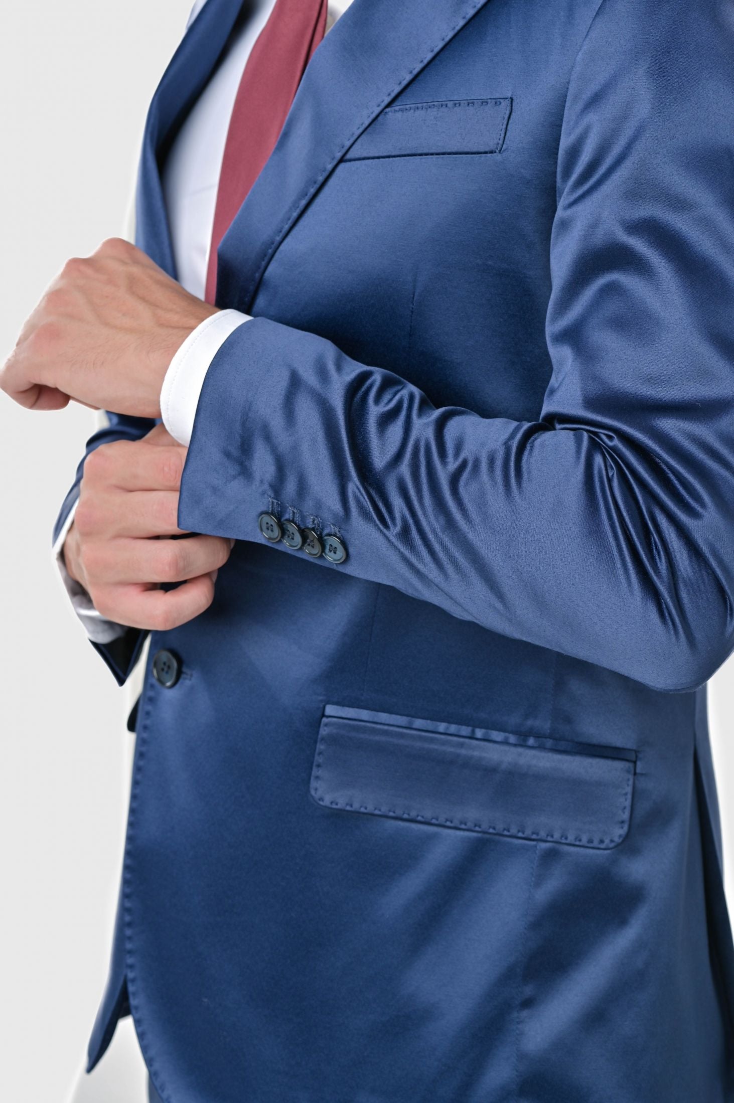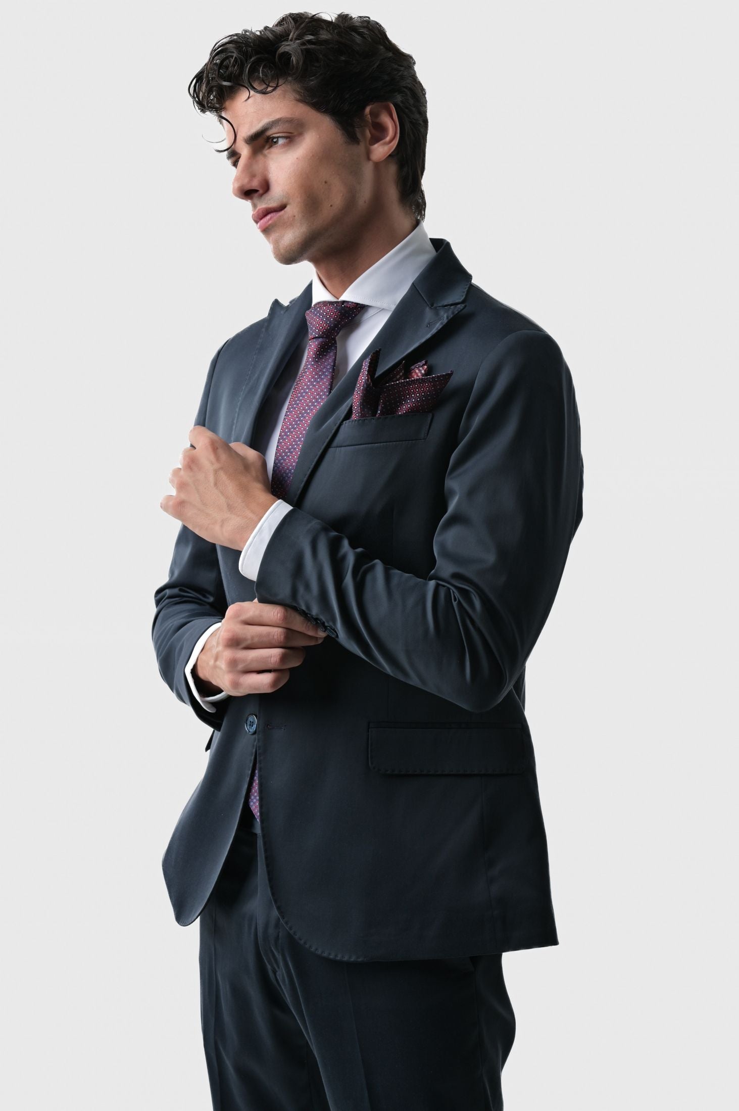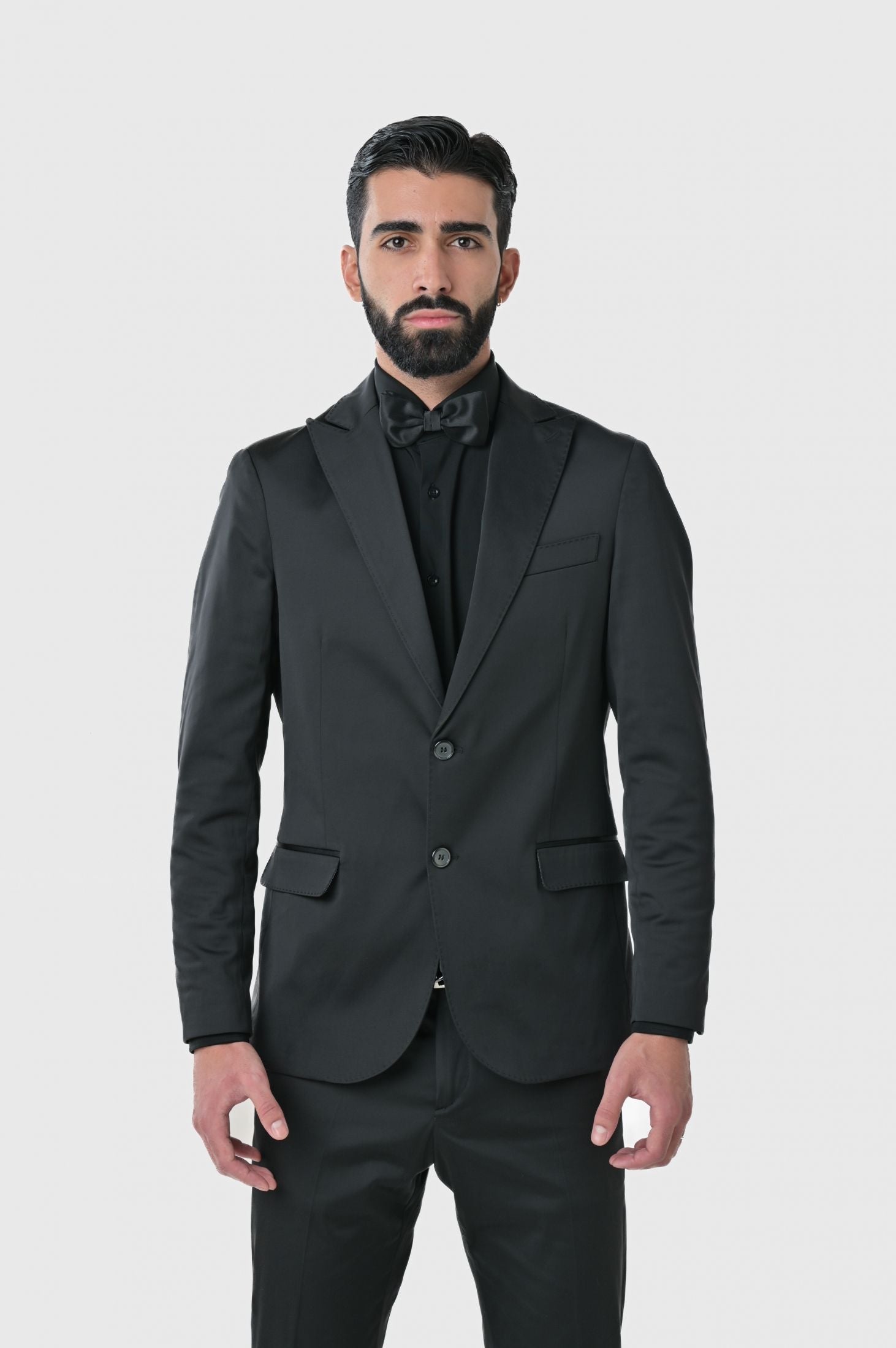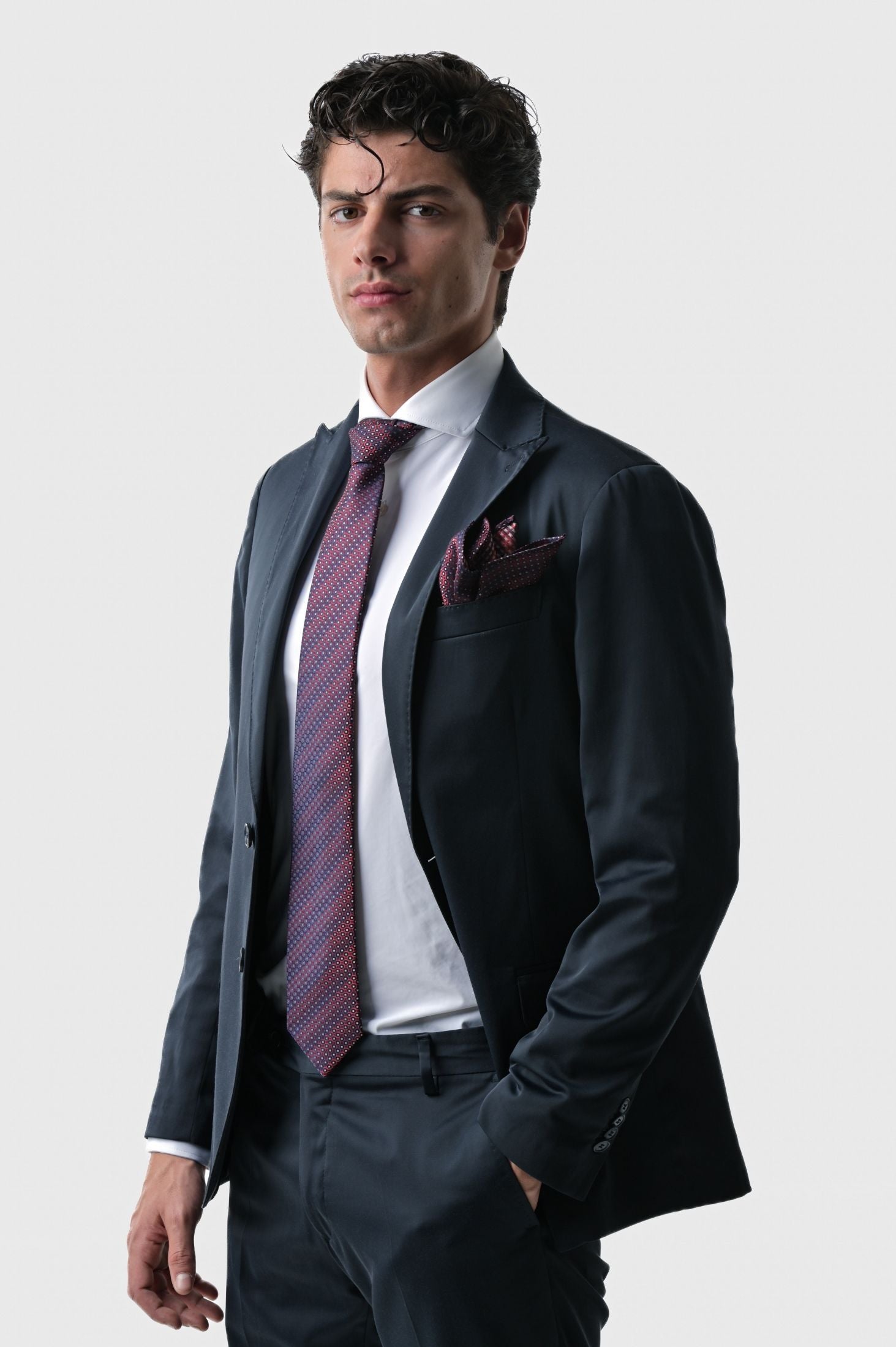 Giacca caratterizzata da tasche a pattina, taschino porta fazzoletto e rever a lancia. Due taschini interni.