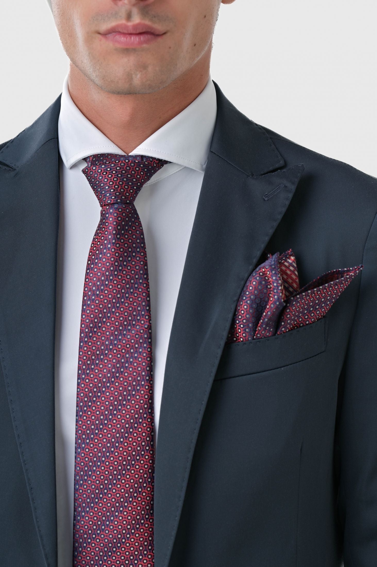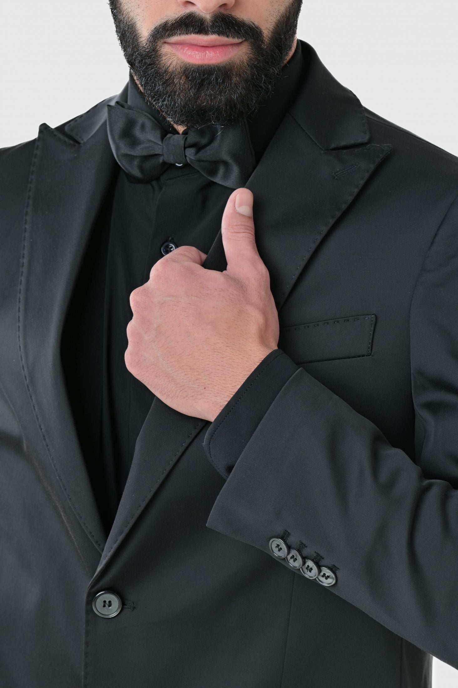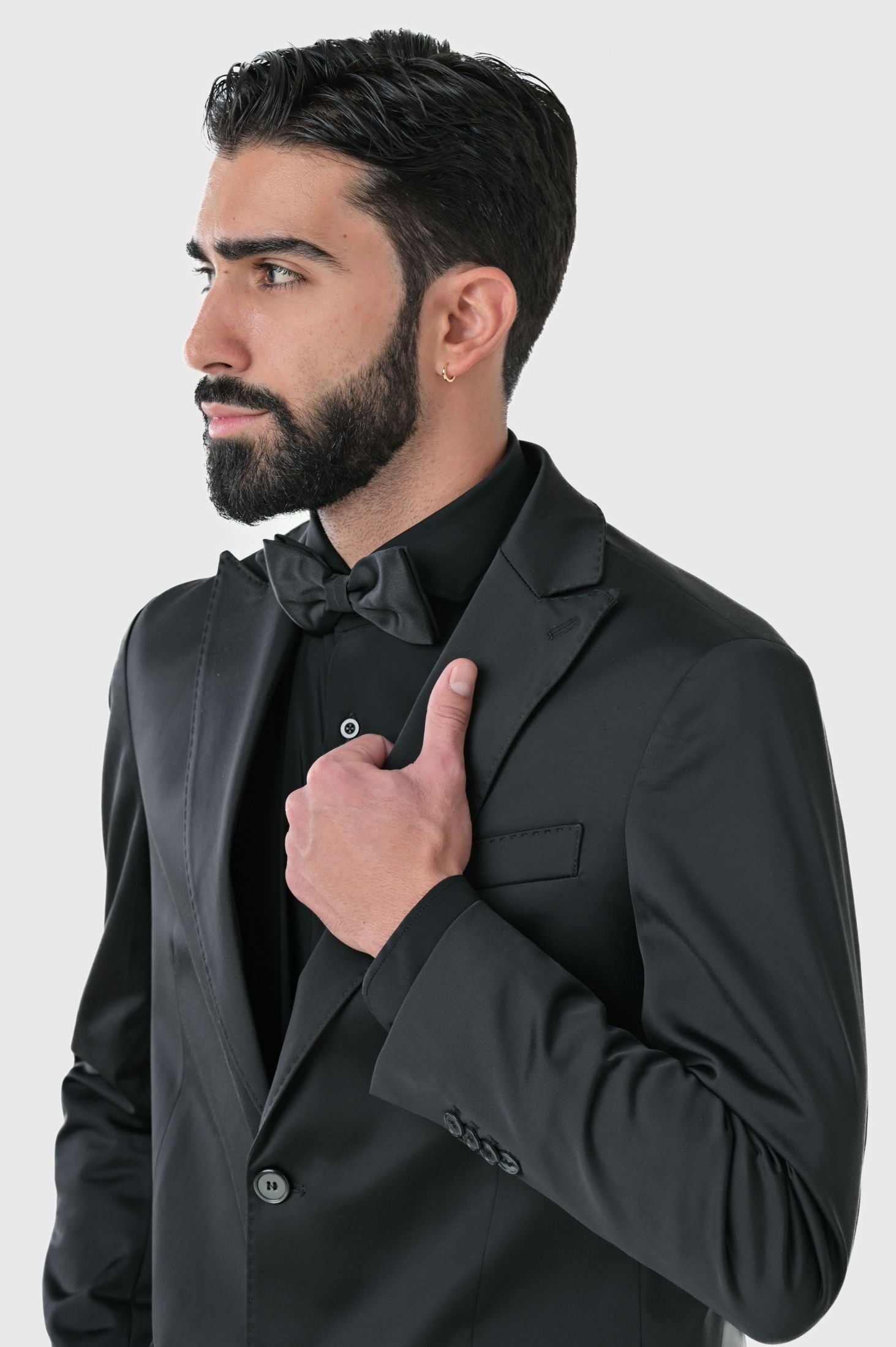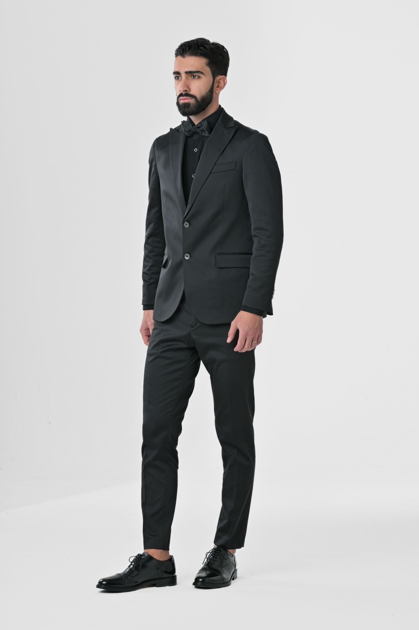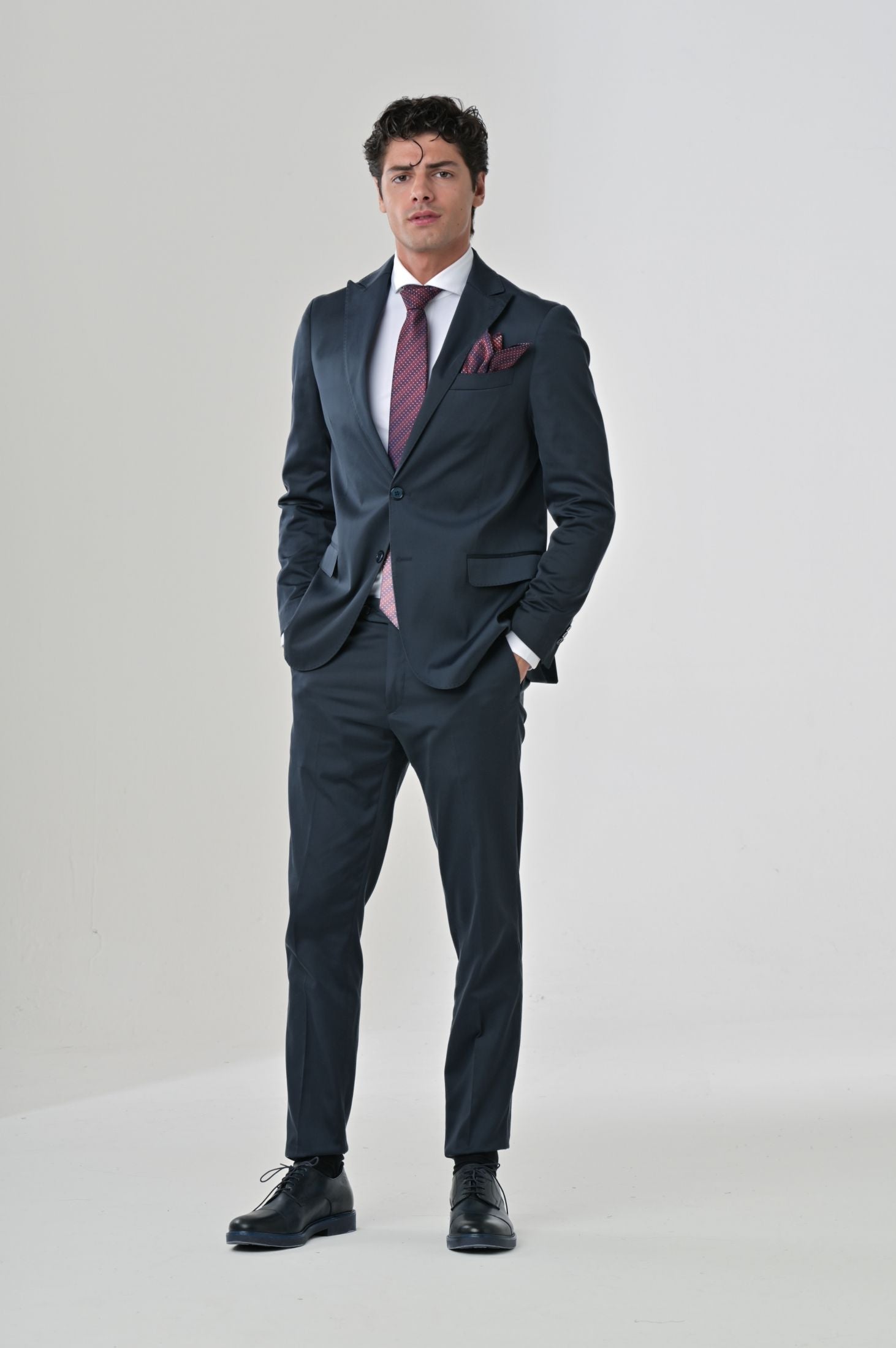 Giacca caratterizzata da tasche a pattina, taschino porta fazzoletto e rever a lancia. Due taschini interni.