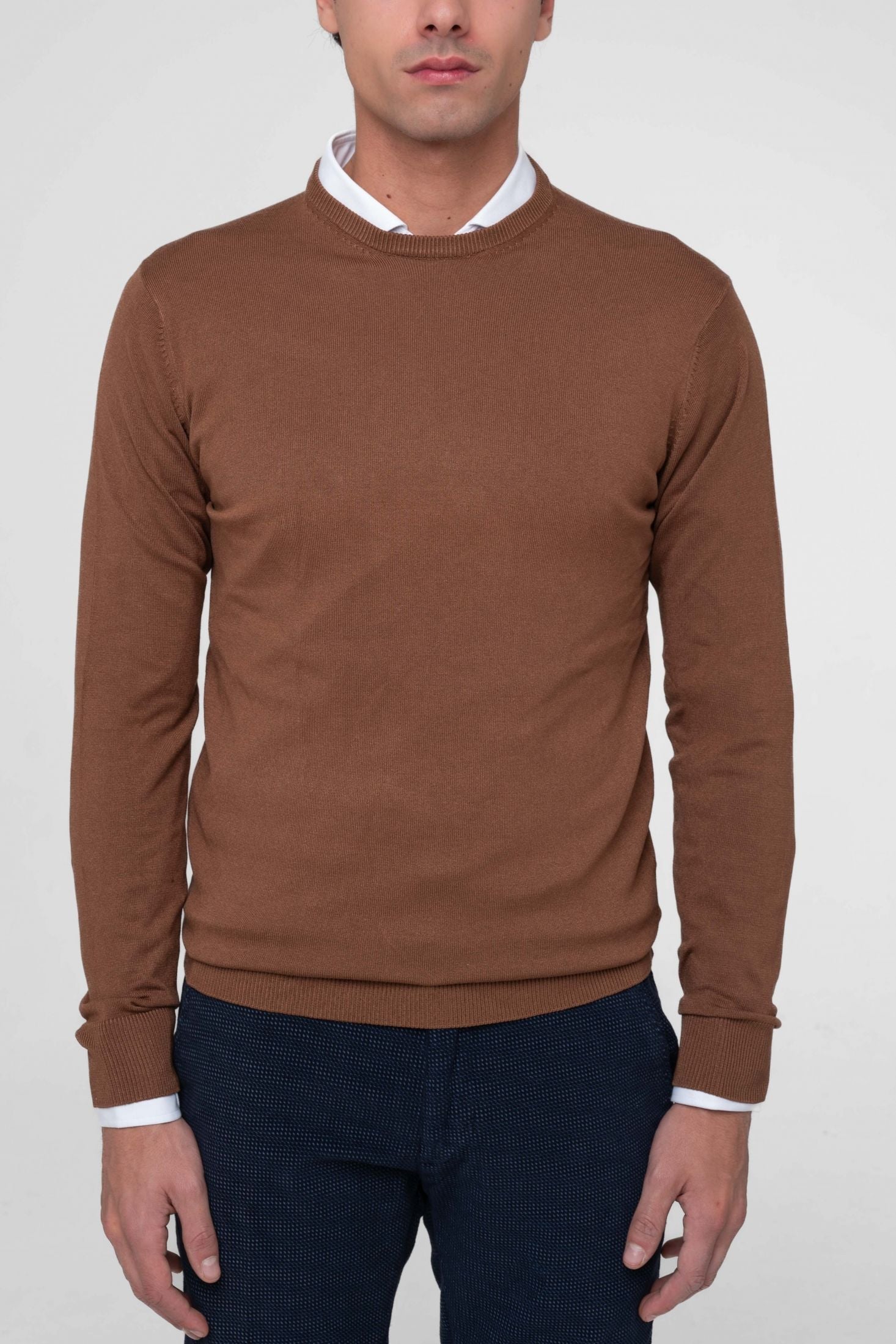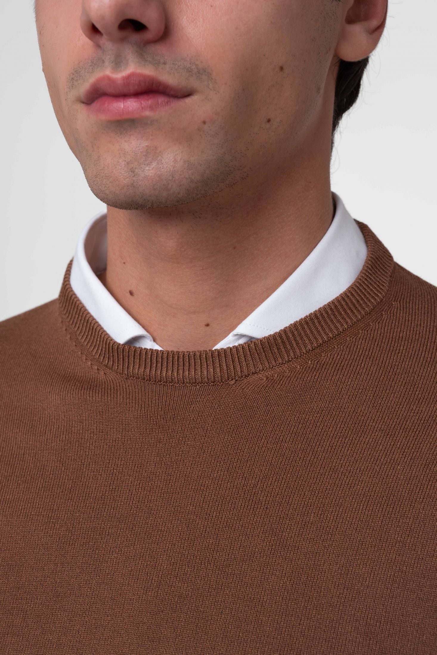Maglia tinta unita a maniche lunghe, girocollo e bordi a coste.